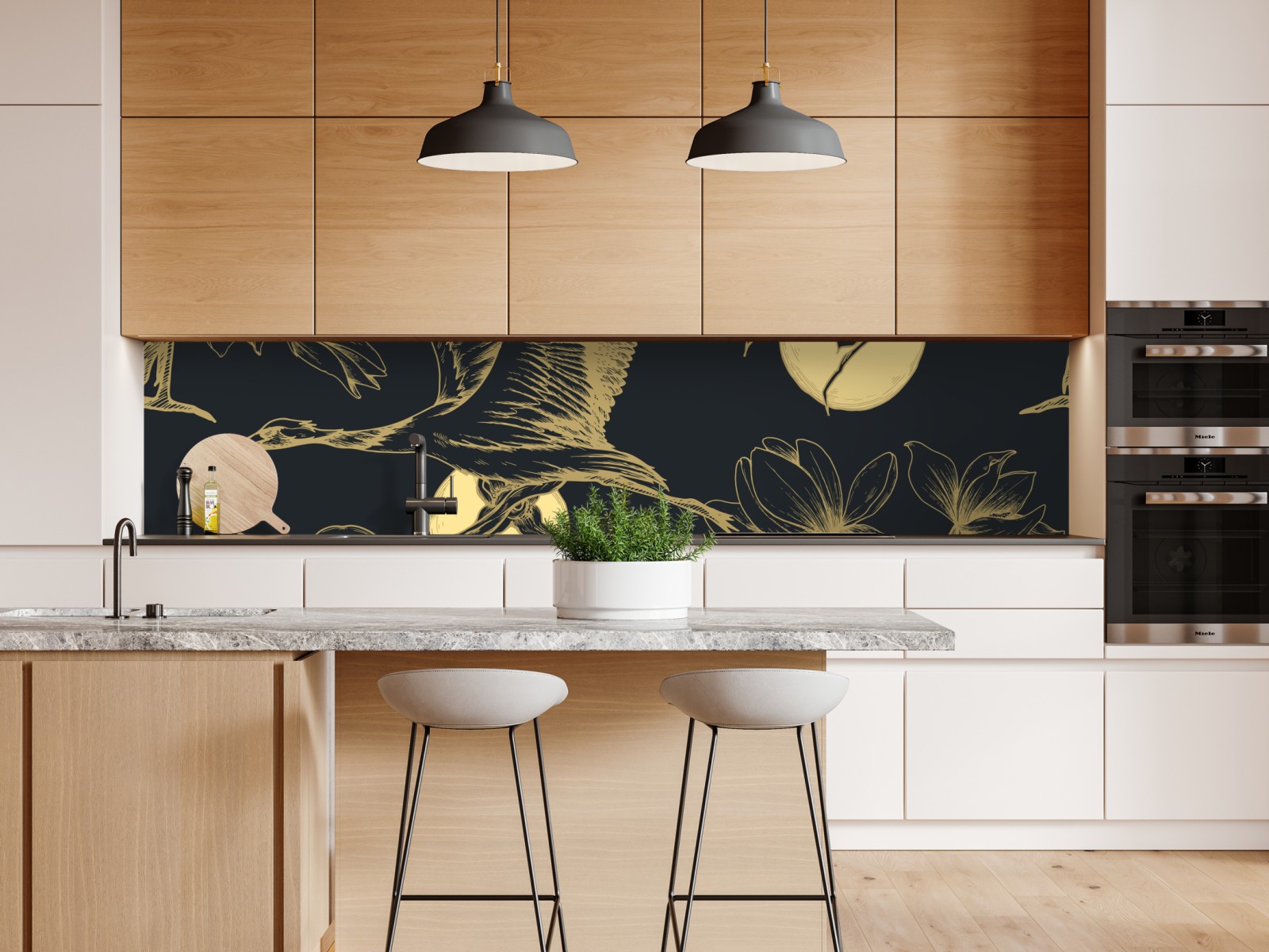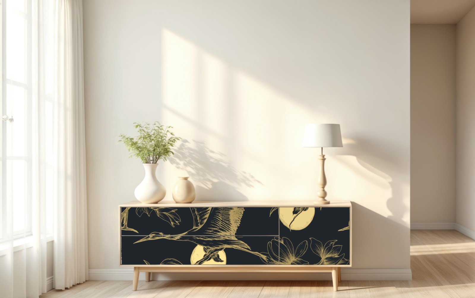 Repositionierbarer Aufkleber Goldene kraniche und mondmuster