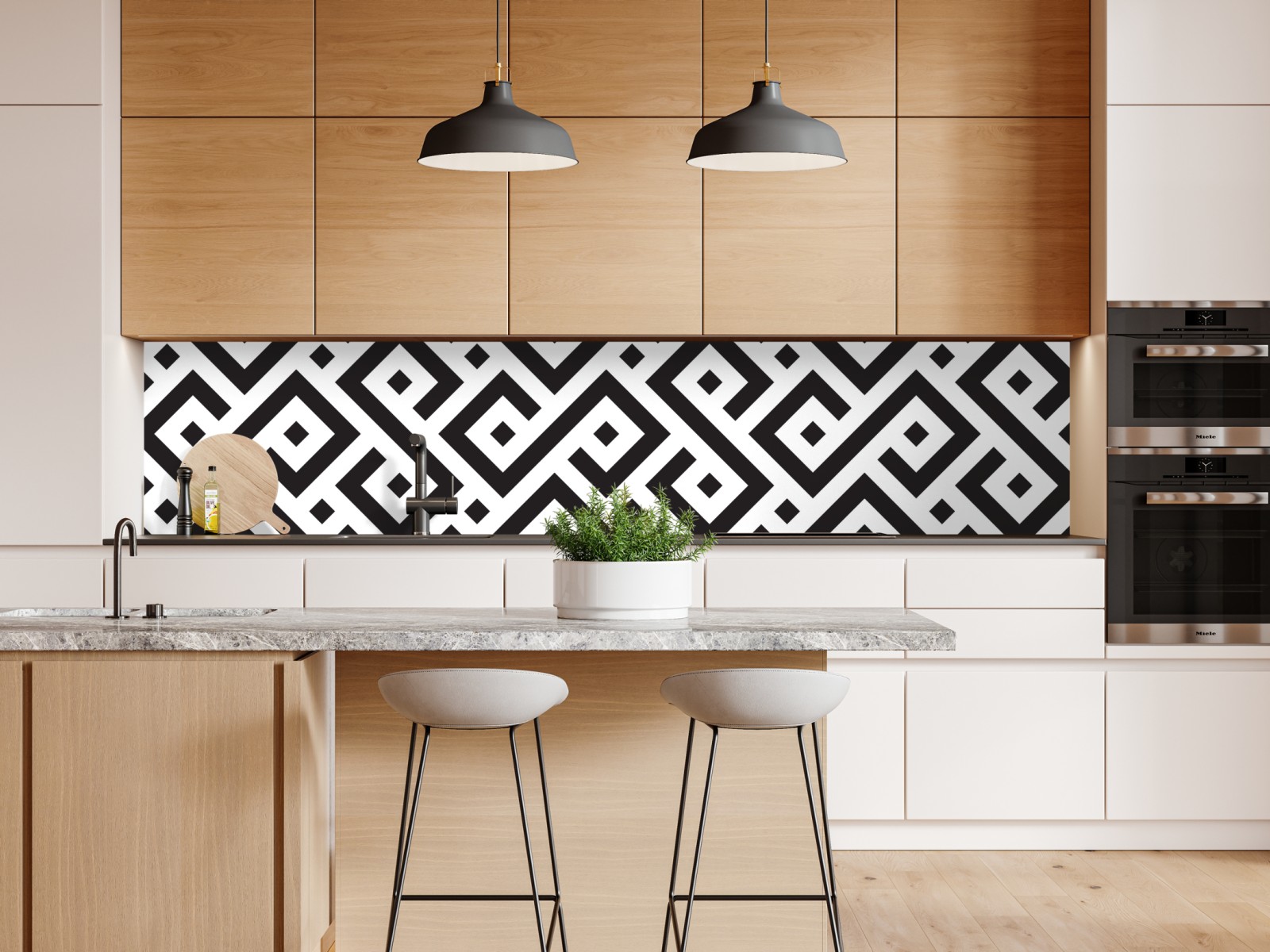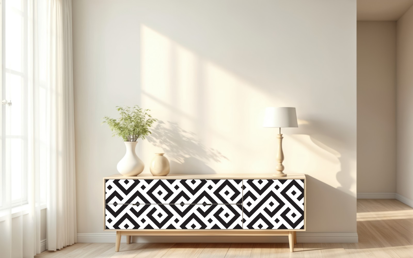 Repositionierbarer Aufkleber Zeitloses schwarz-weiß geometrisches muster