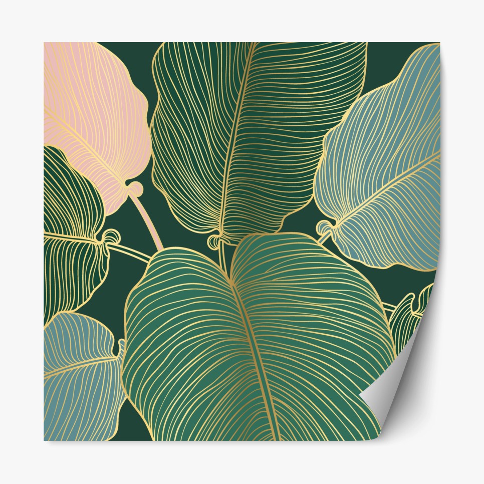 Repositionierbarer Aufkleber Tropische blätter mit goldkontur