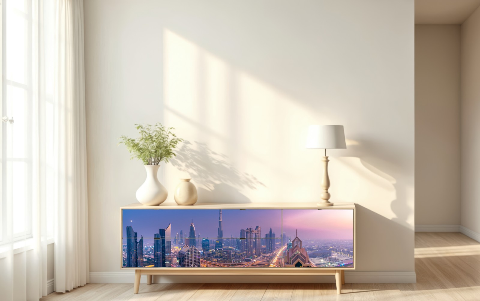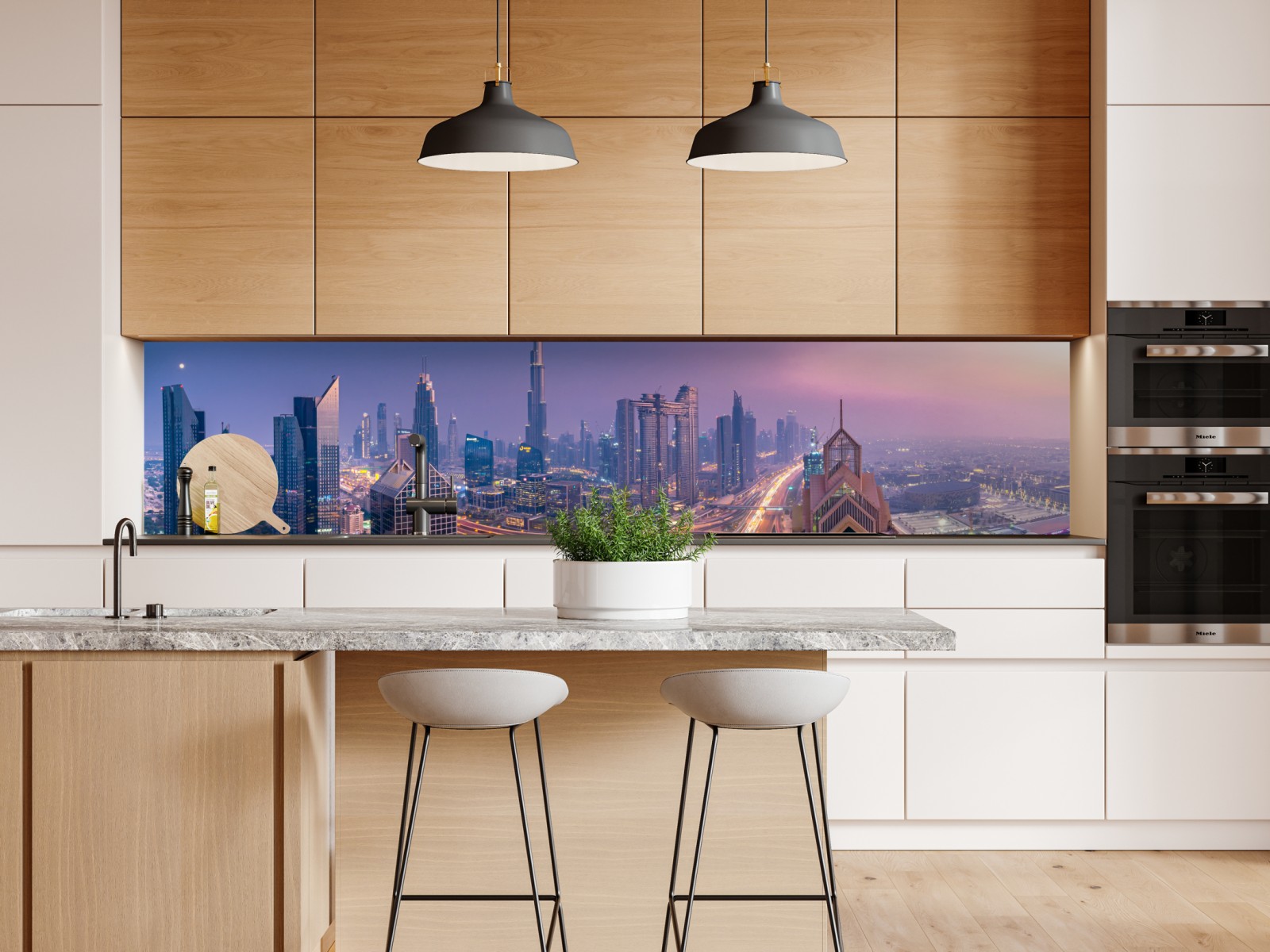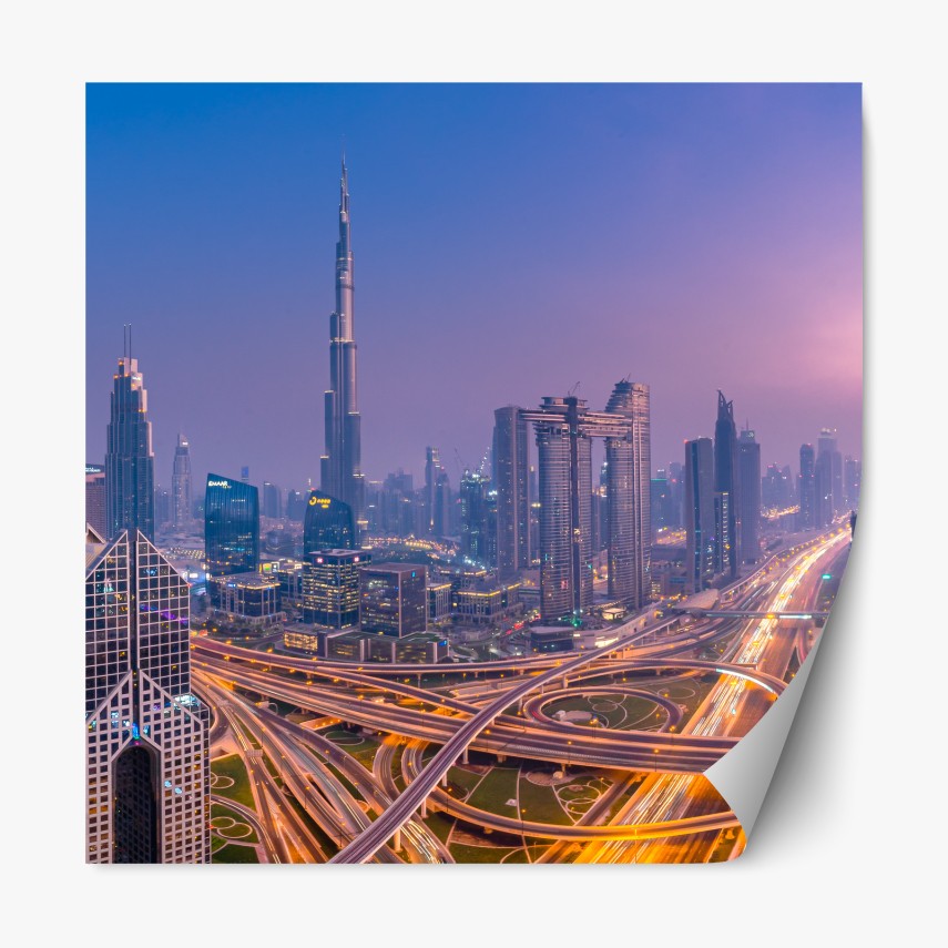 Repositionierbarer Aufkleber Panoramablick auf Dubai bei dämmerung