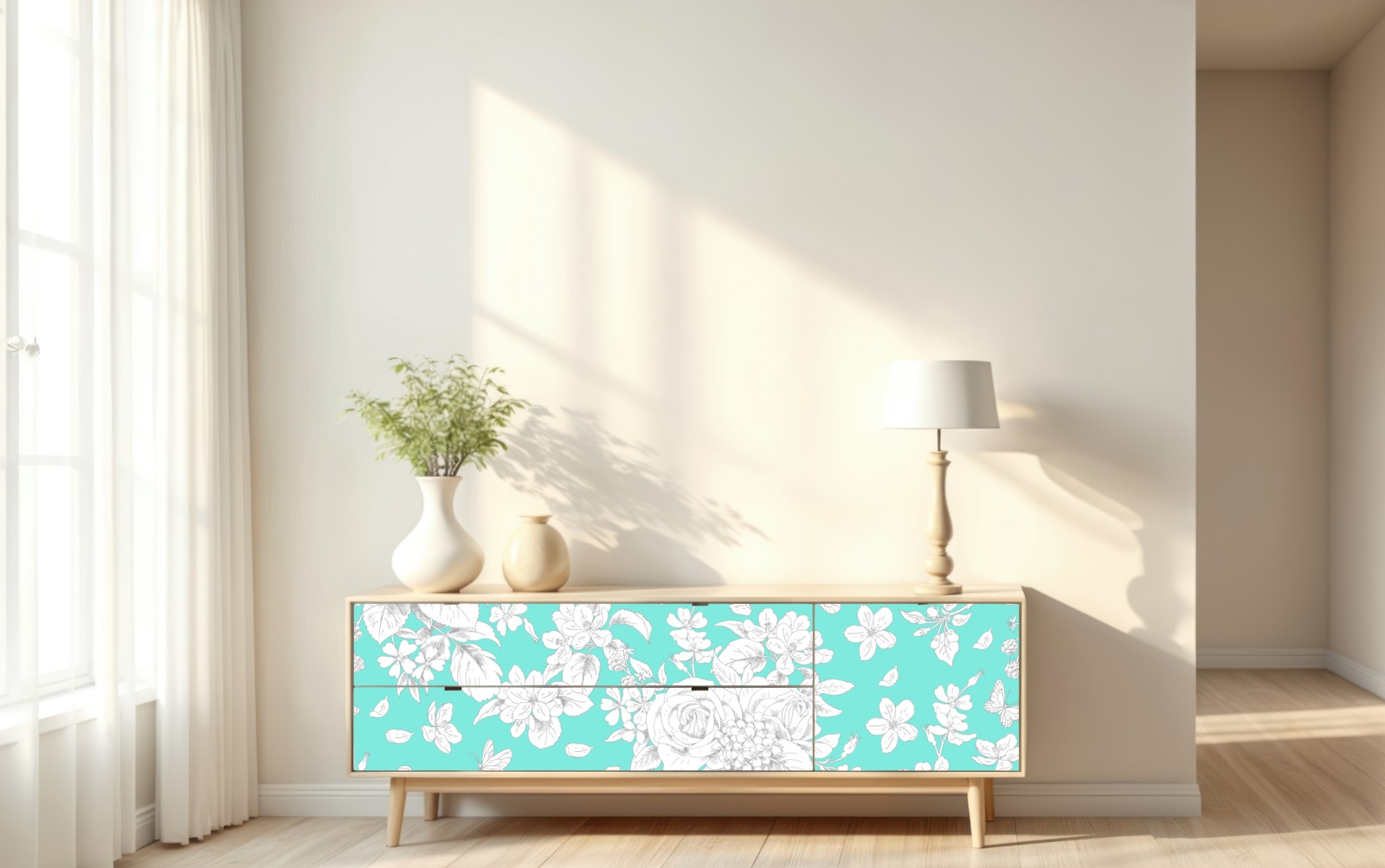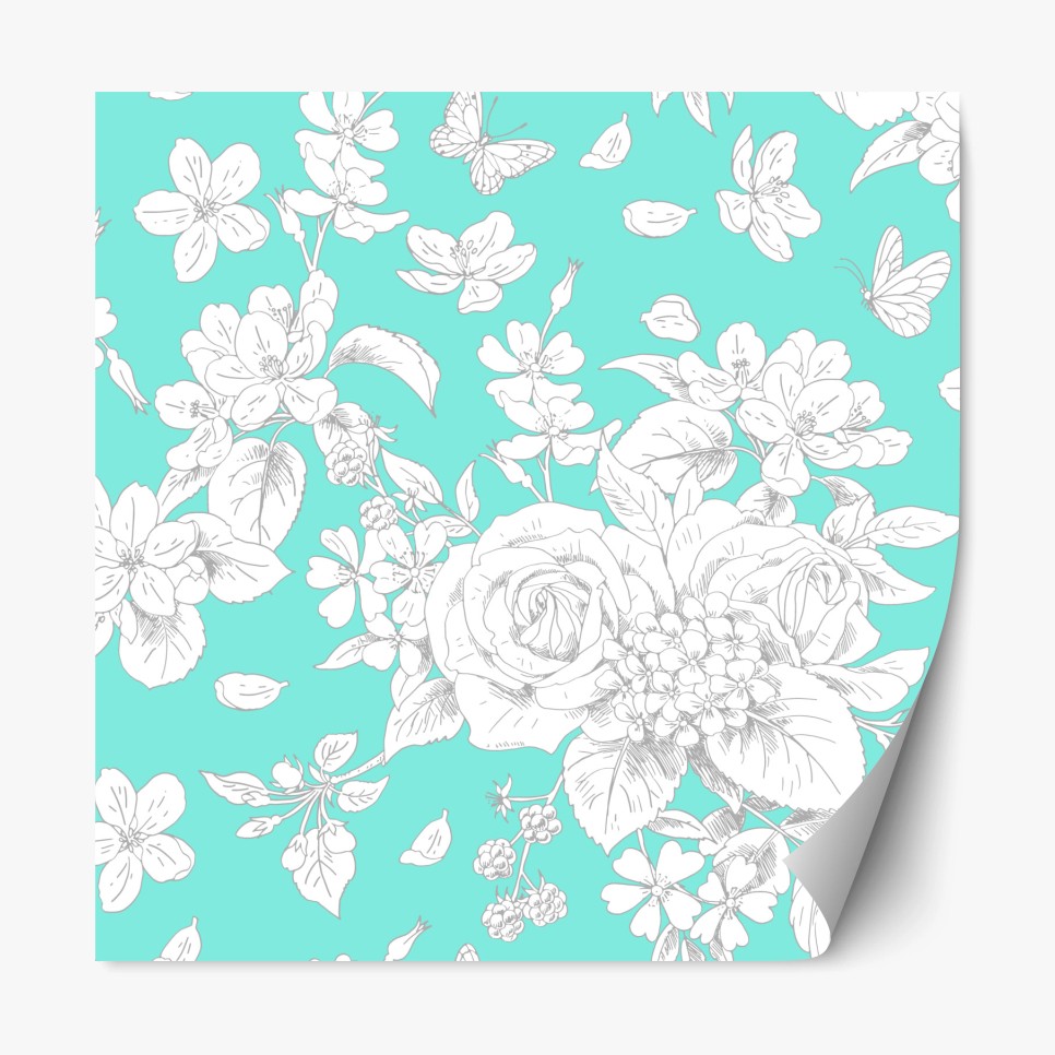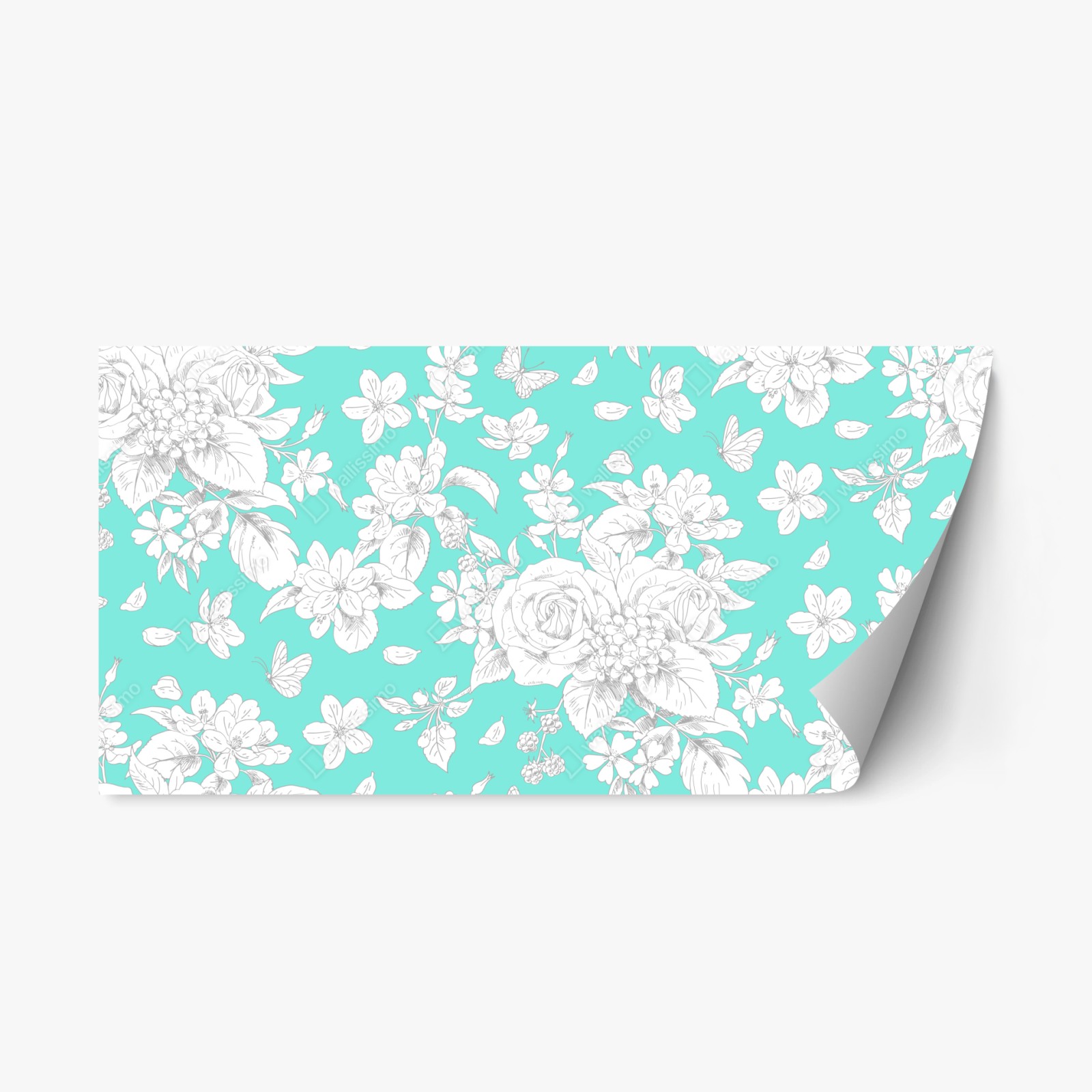 Repositionierbarer Aufkleber Türkis floral muster mit blumen