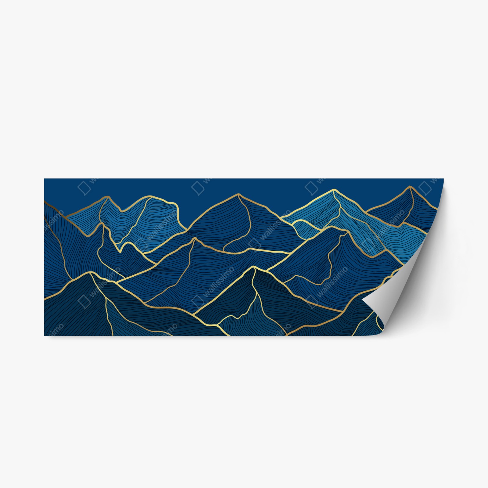 Repositionierbarer Aufkleber Goldene linien berglandschaft auf dunkelblauem hintergrund