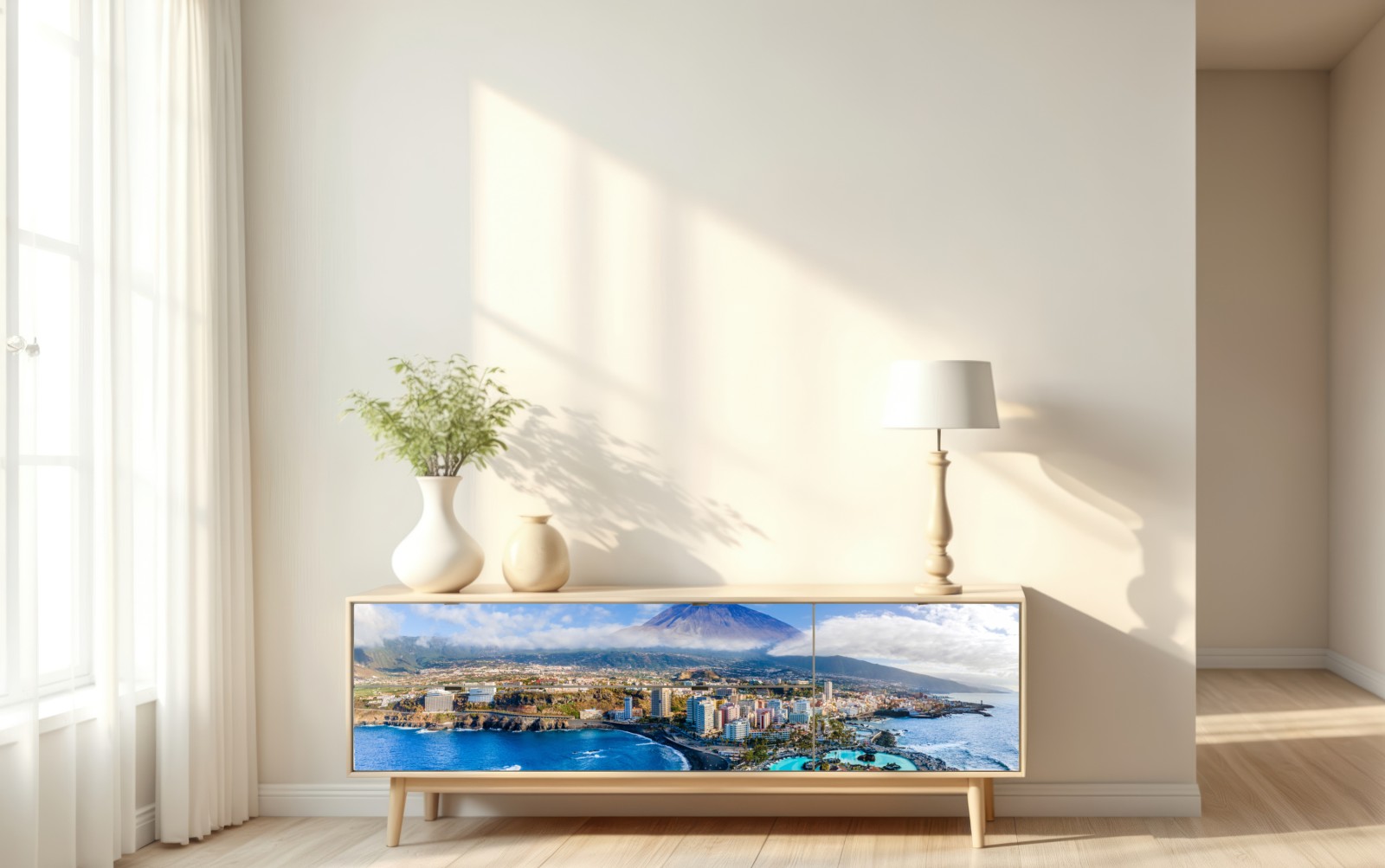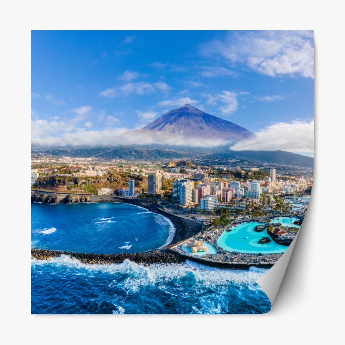 Repositionierbarer Aufkleber Luftpanorama der küste von Teneriffa mit dem Mount Teide