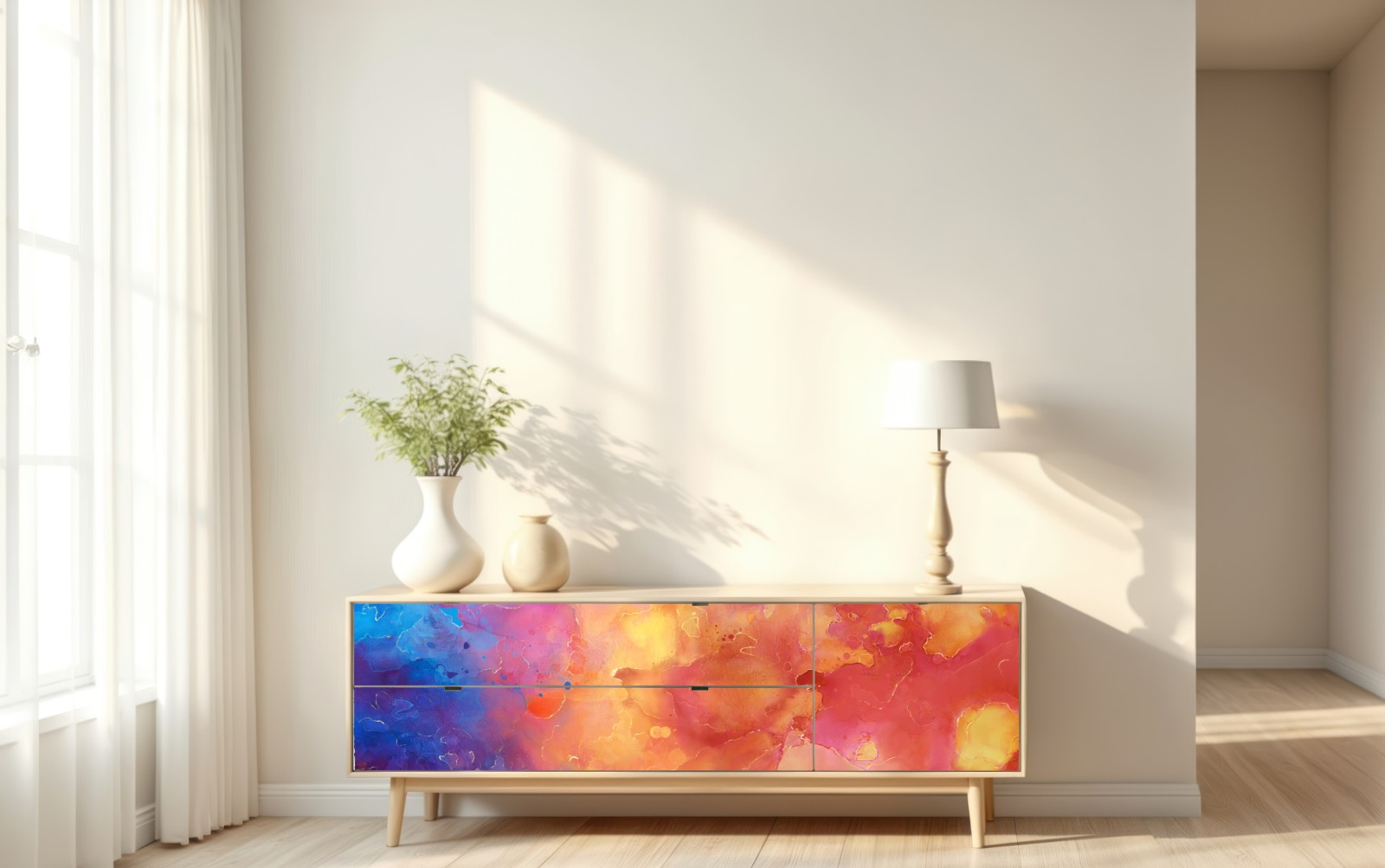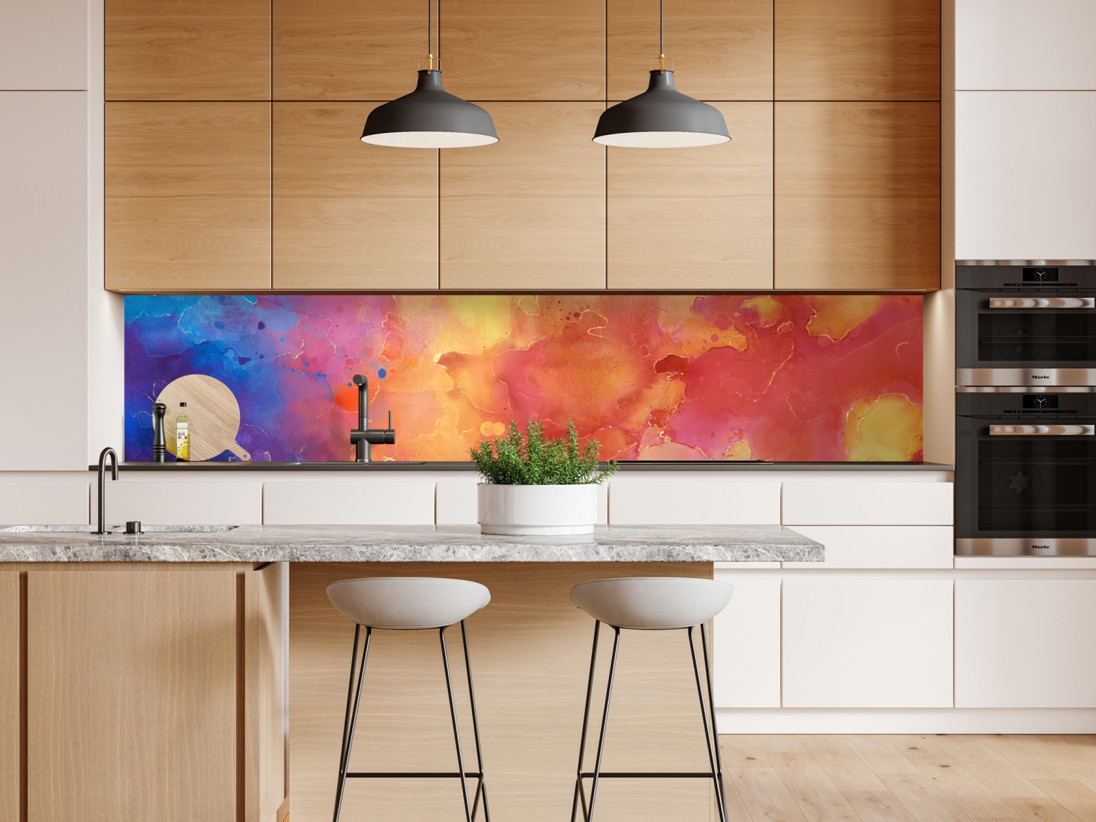Repositionierbarer Aufkleber Lebhafte aquarell-abstraktion in warmen tönen