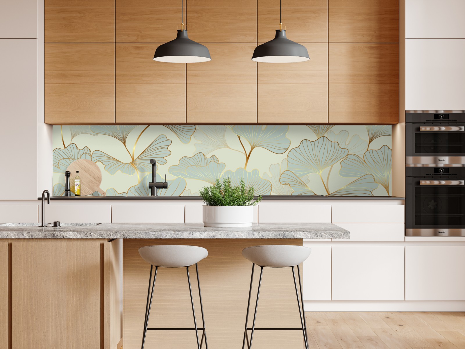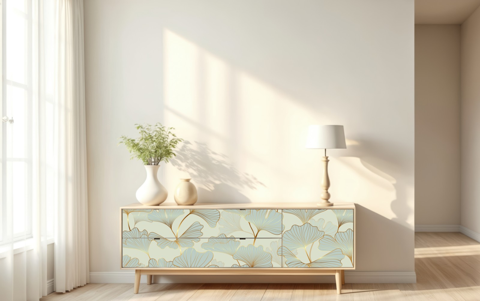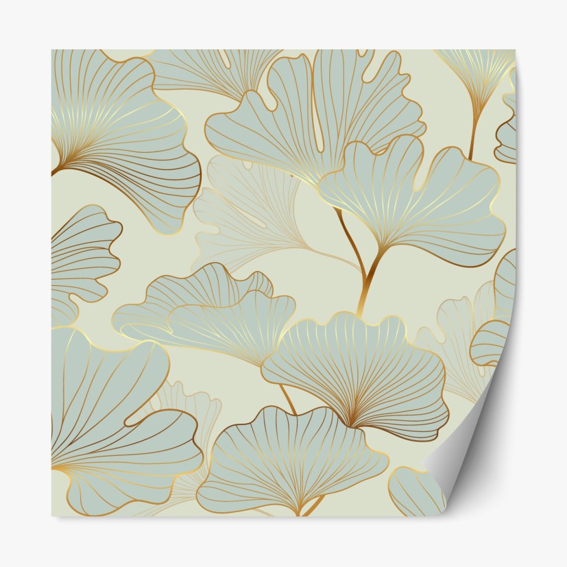 Repositionierbarer Aufkleber Pastell ginkgo blättermuster mit goldakzenten