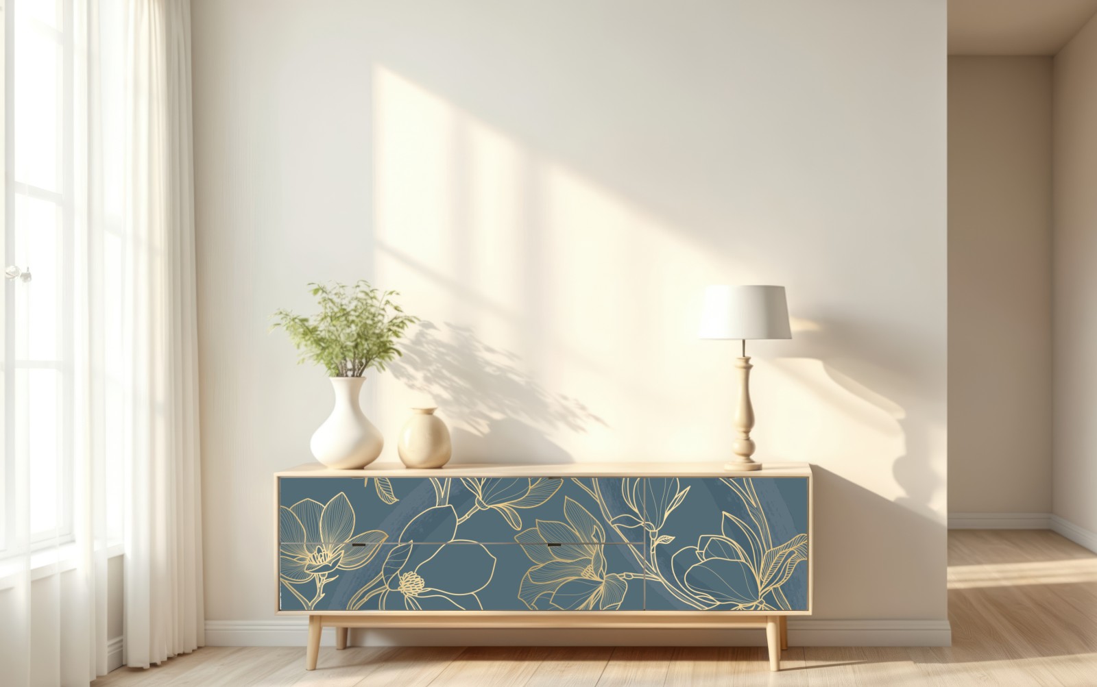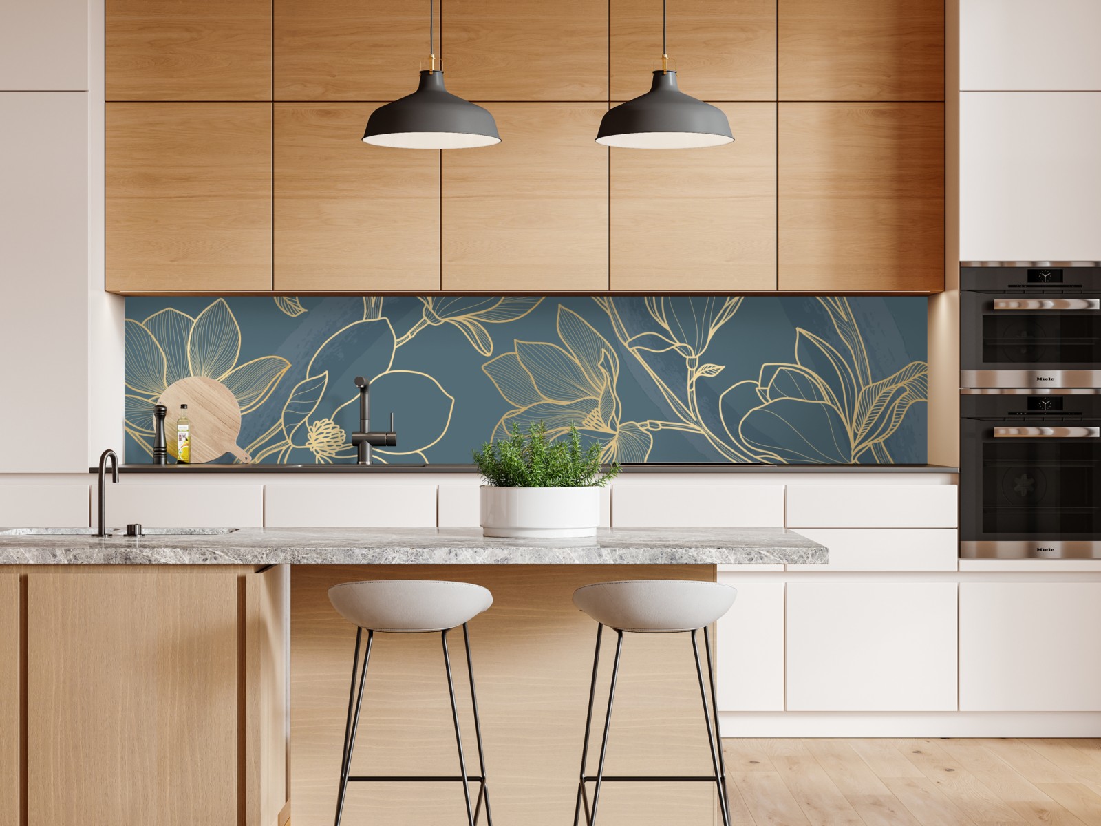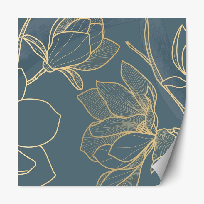 Repositionierbarer Aufkleber Goldene magnolie auf türkisfarbenem hintergrund
