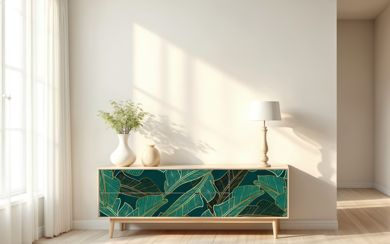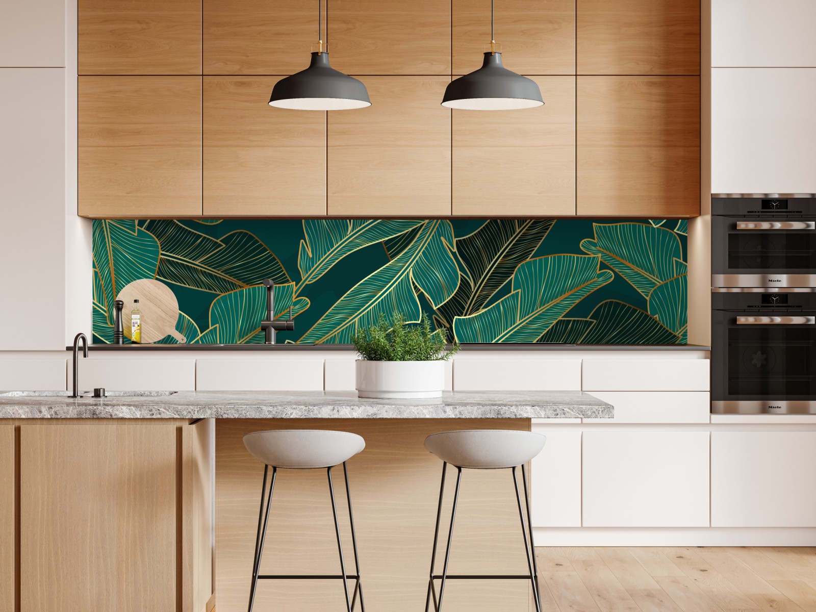 Repositionierbarer Aufkleber Goldene tropische bananenblätter