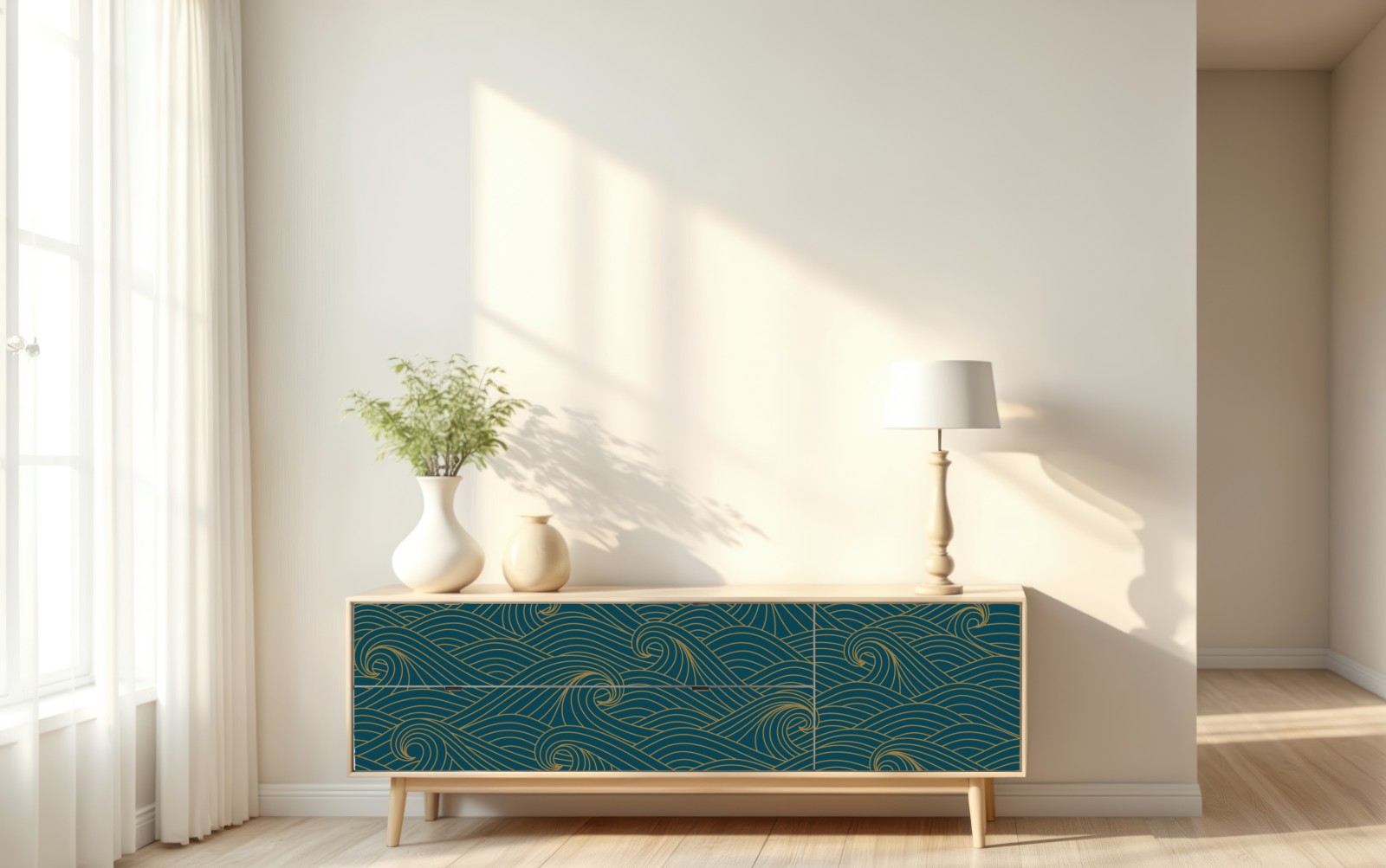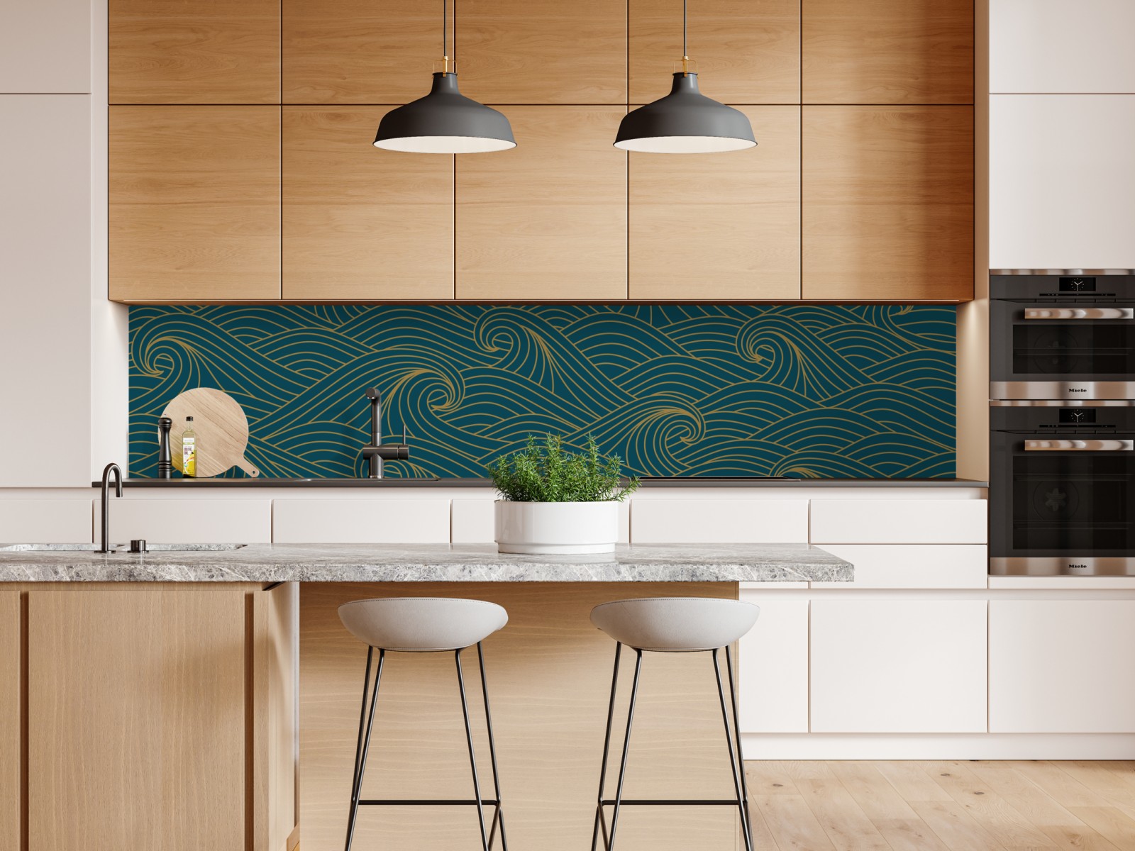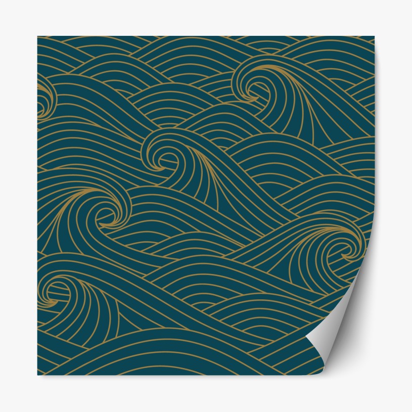 Repositionierbarer Aufkleber Türkiswellenmuster mit goldlinien