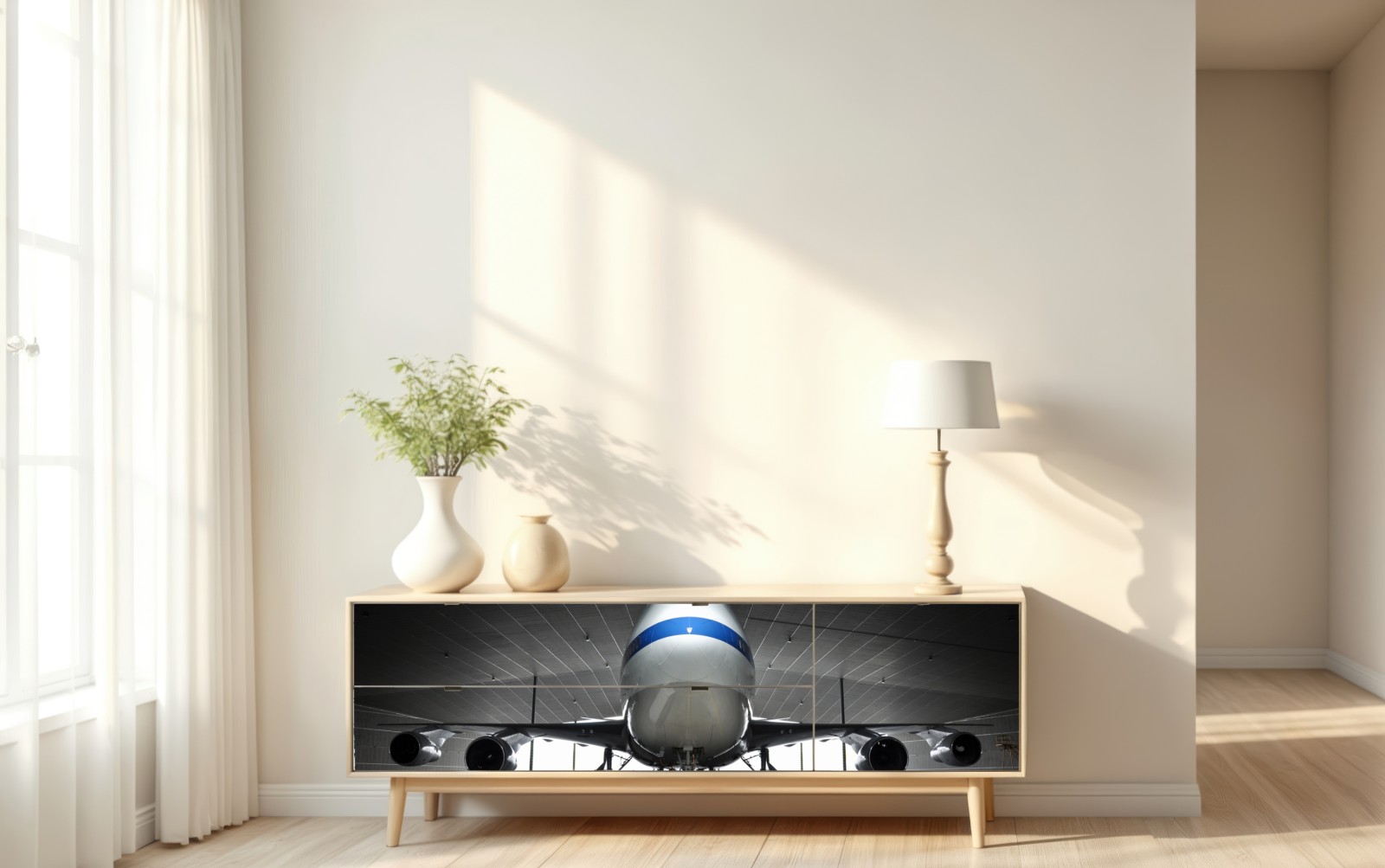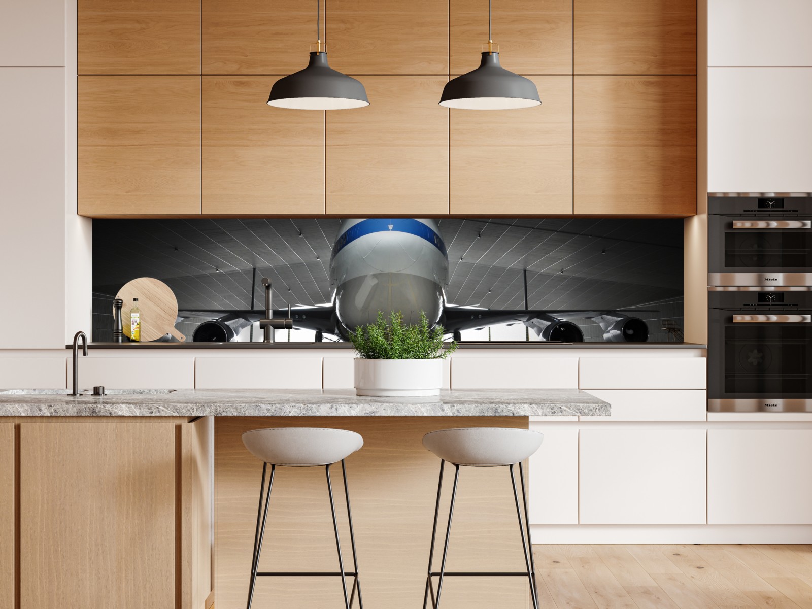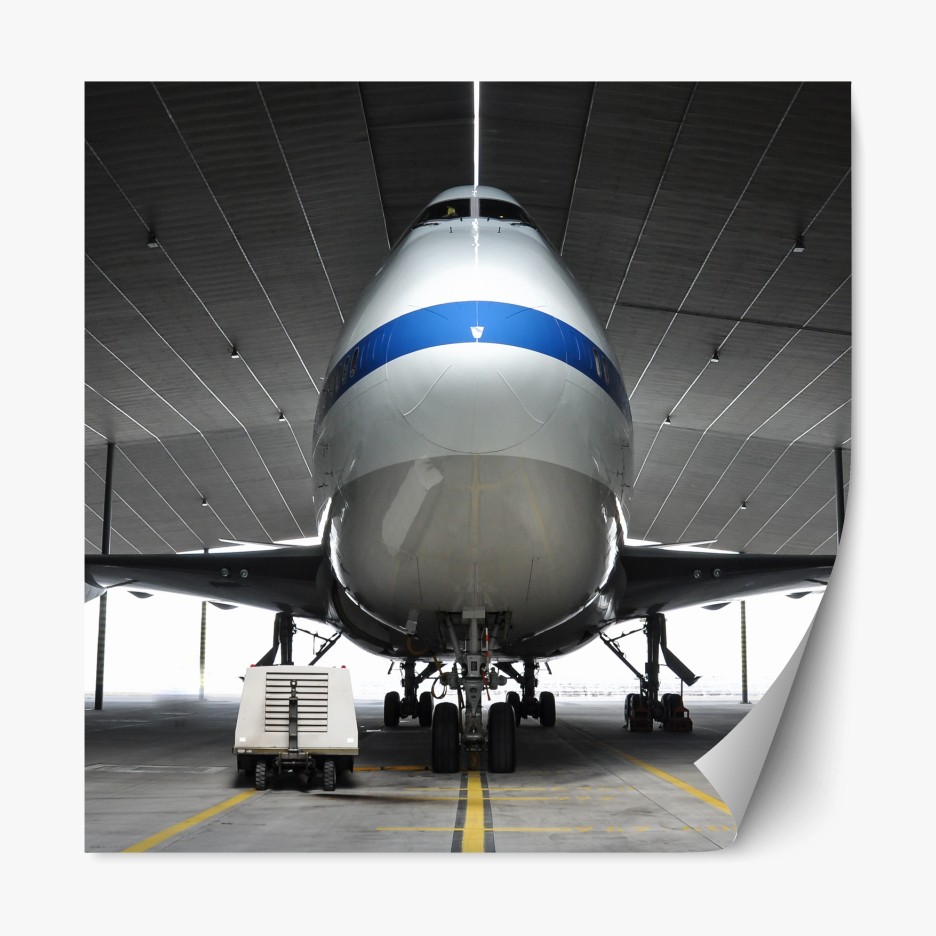 Repositionierbarer Aufkleber Frachter im hangar - frontansicht des jets
