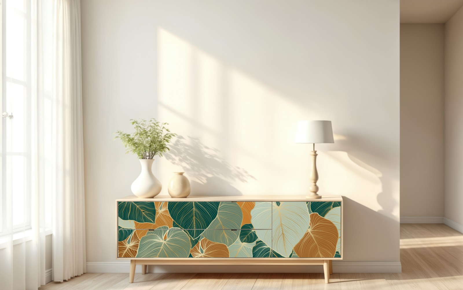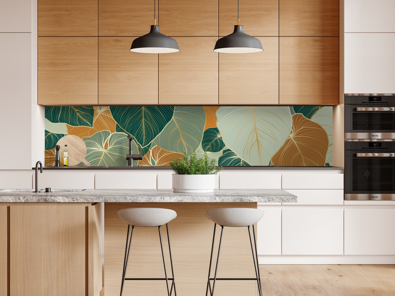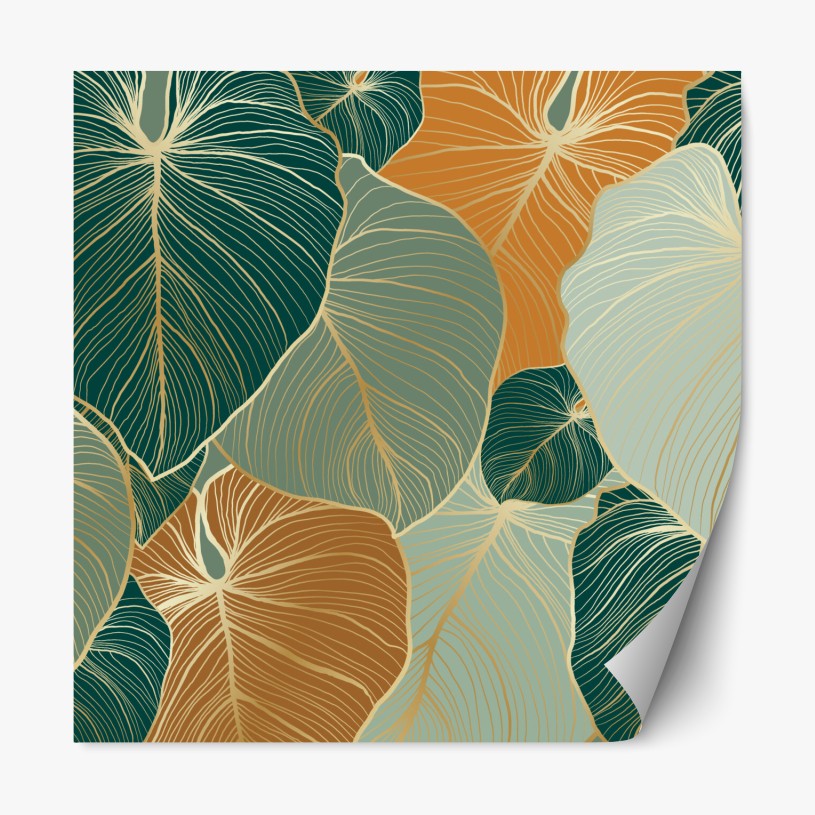 Repositionierbarer Aufkleber Türkis-goldenes botanisches blättermuster