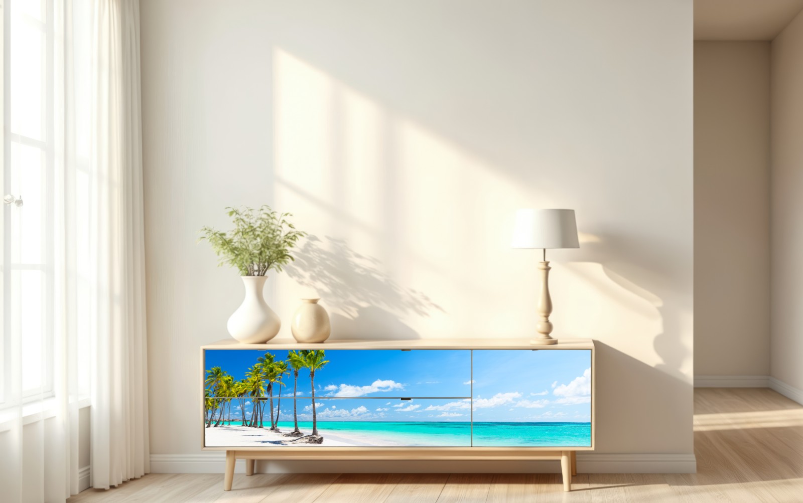 Repositionierbarer Aufkleber Tropisches strandpanorama in Punta Cana