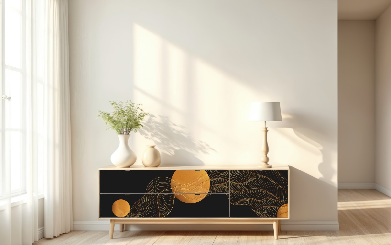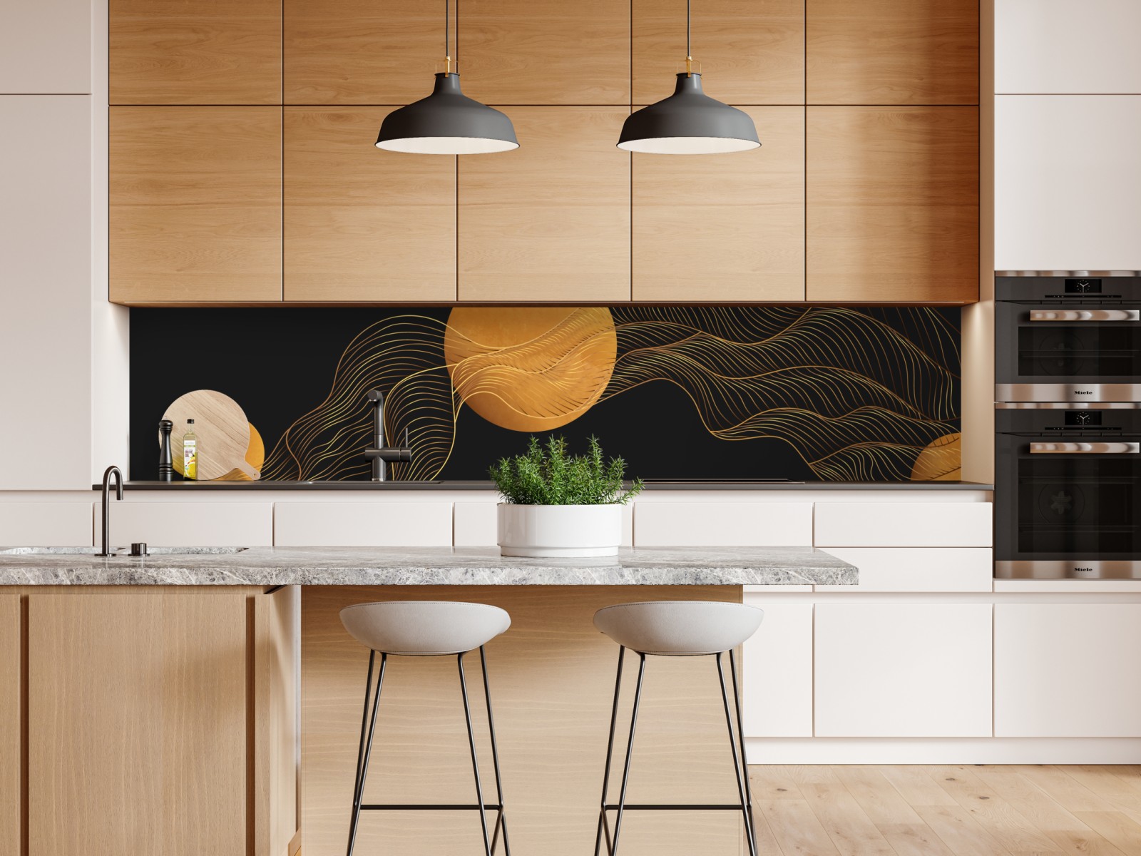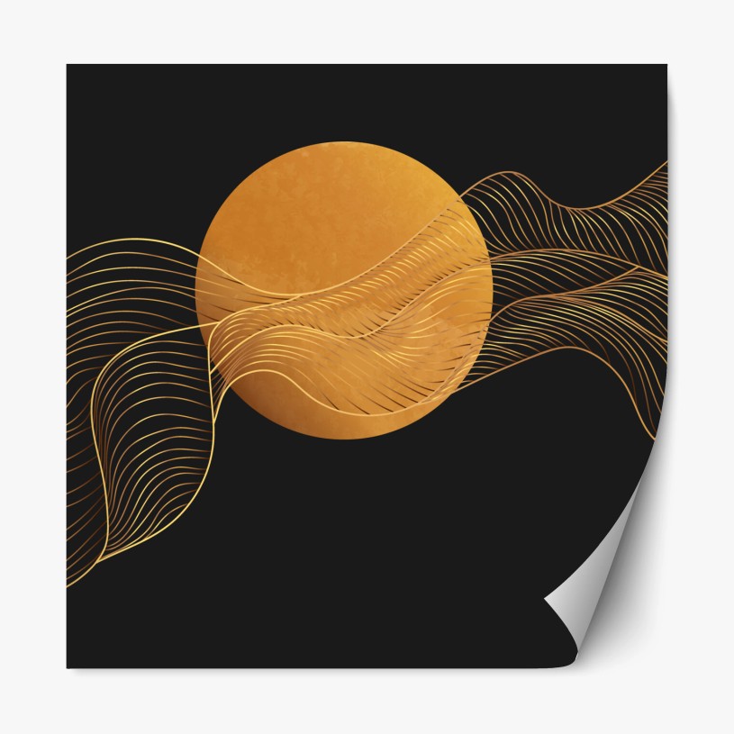 Repositionierbarer Aufkleber Goldene wellen auf schwarzem grund — abstrakte komposition