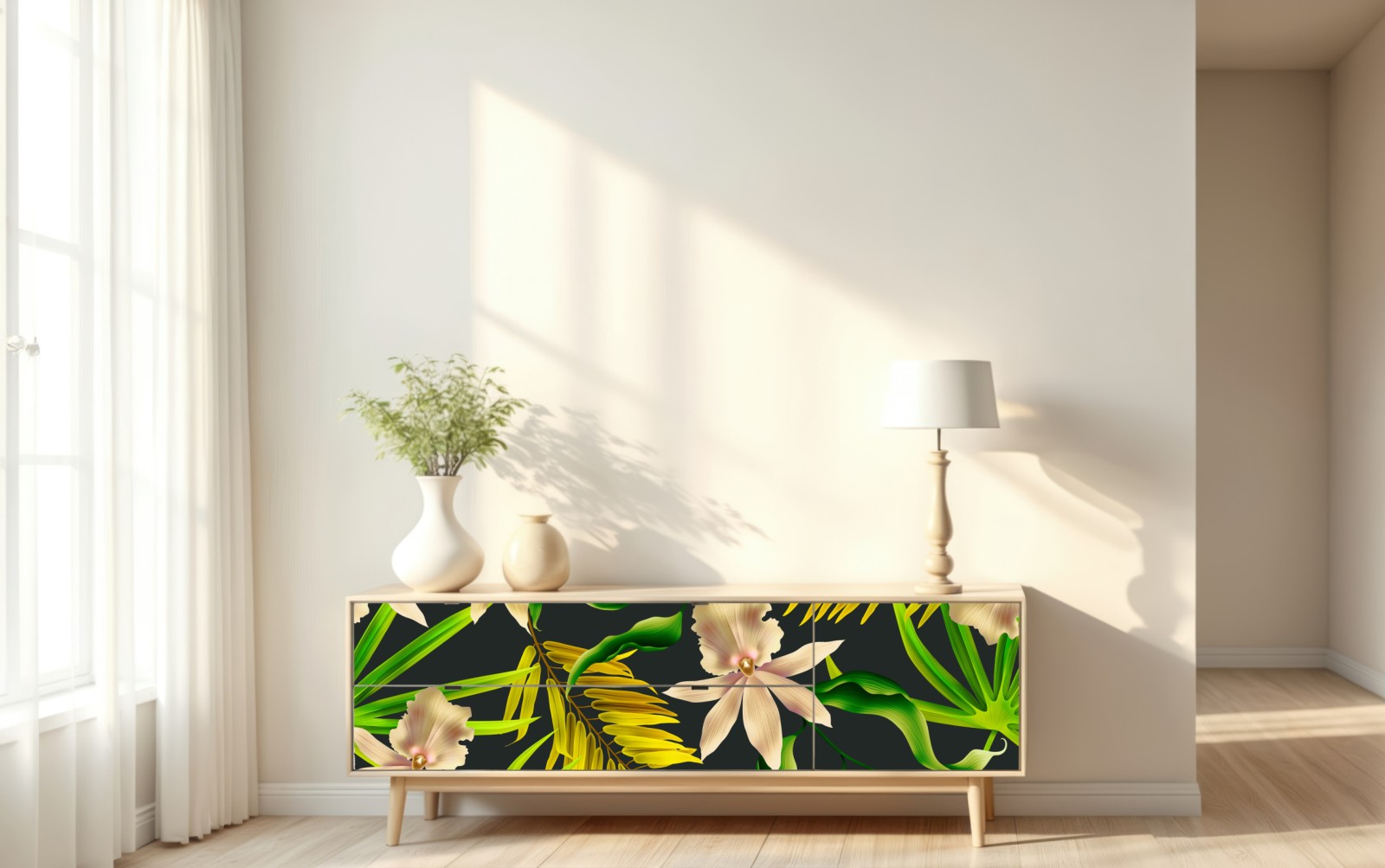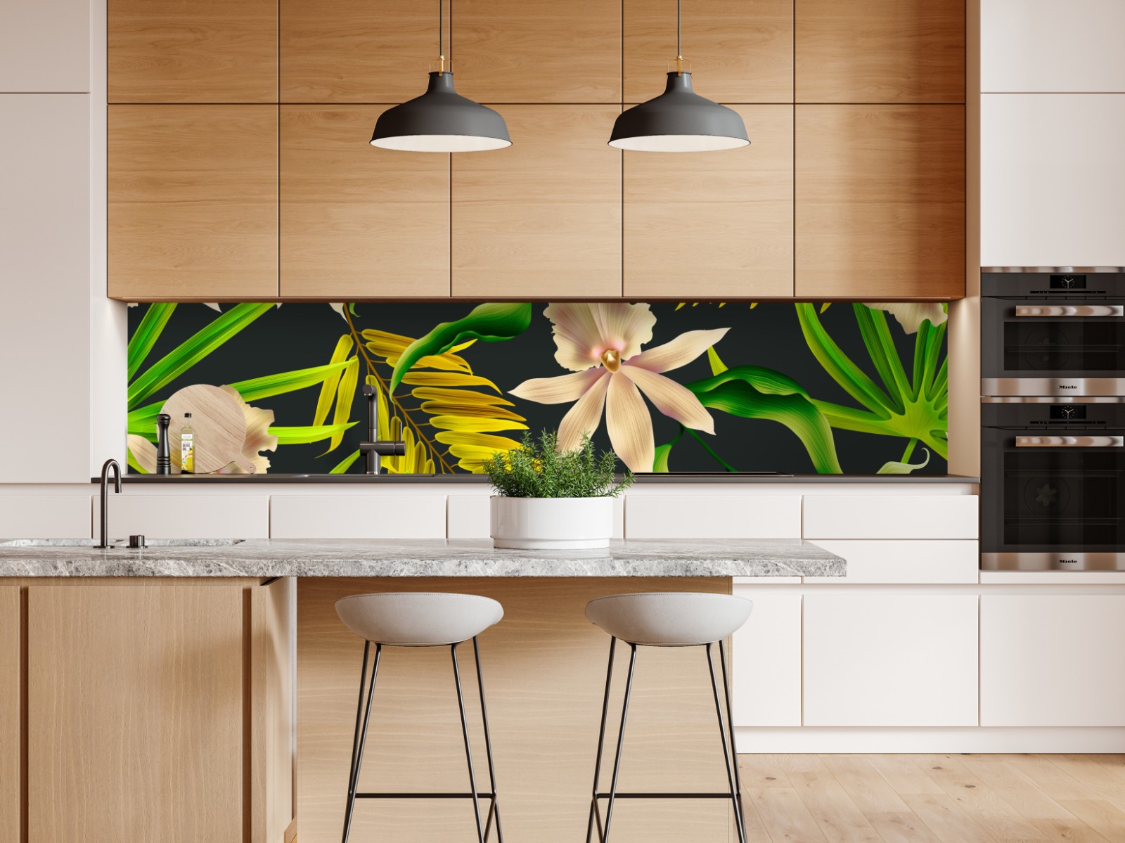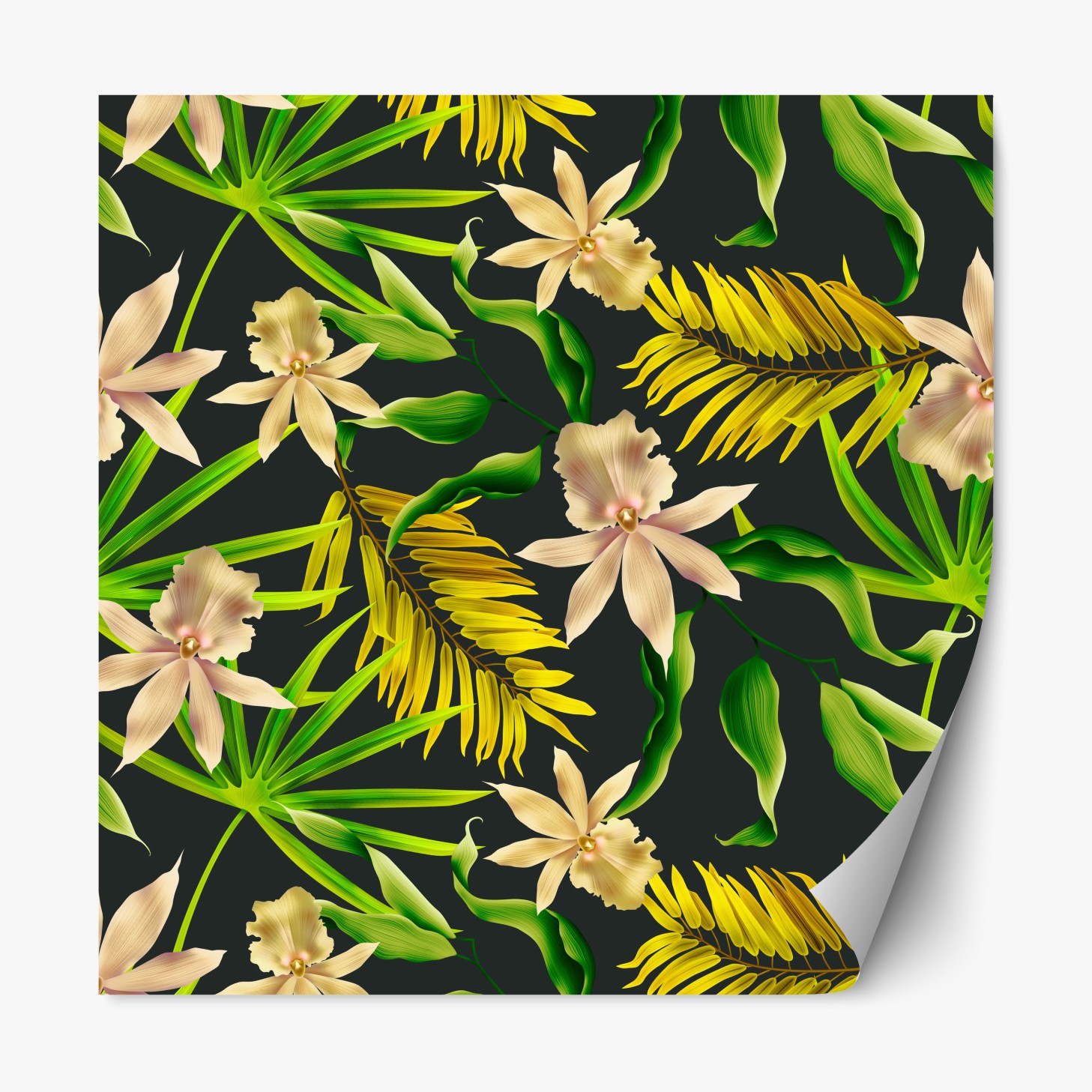 Repositionierbarer Aufkleber Tropisches orchideenmuster auf dunklem hintergrund