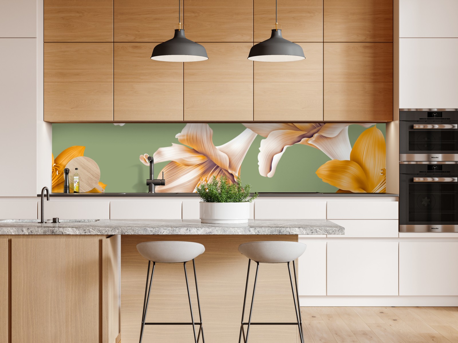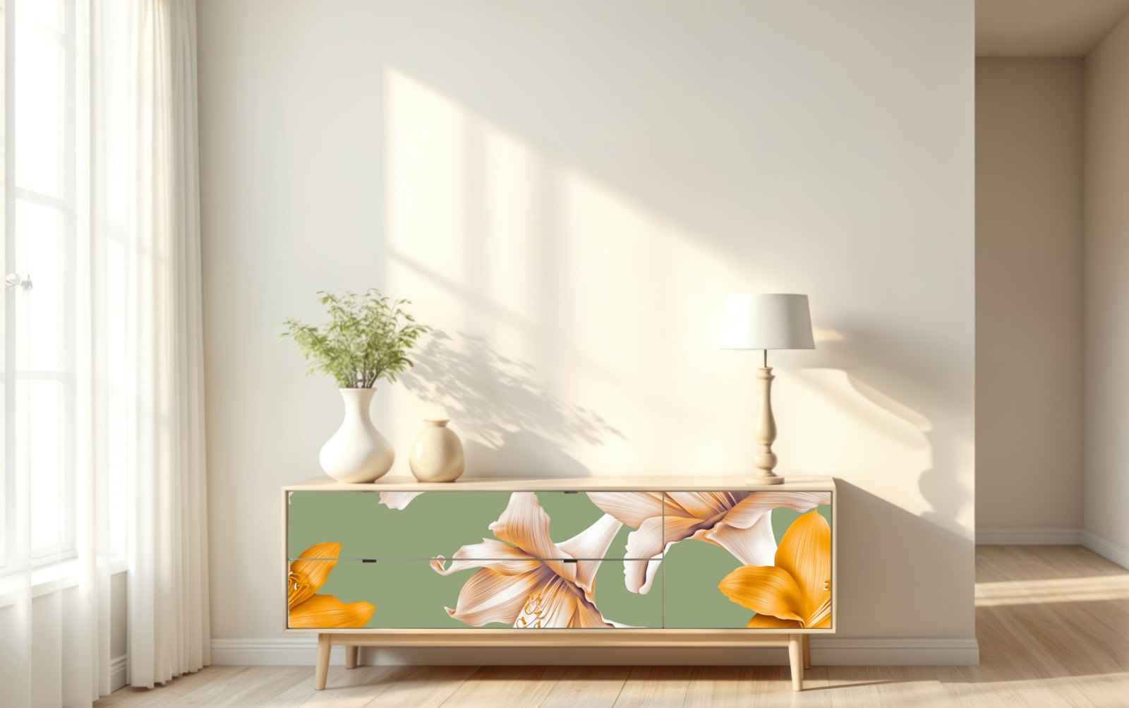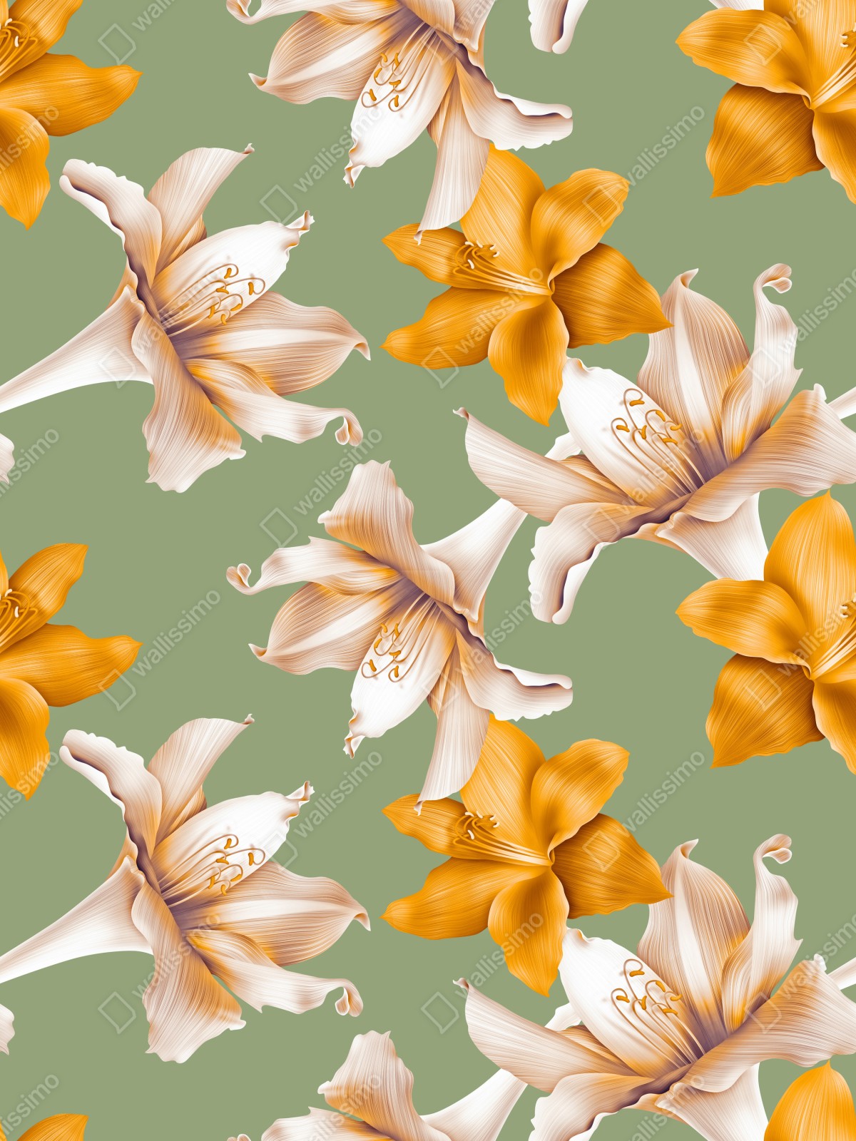 Repositionierbarer Aufkleber Goldene lilien botanisches muster