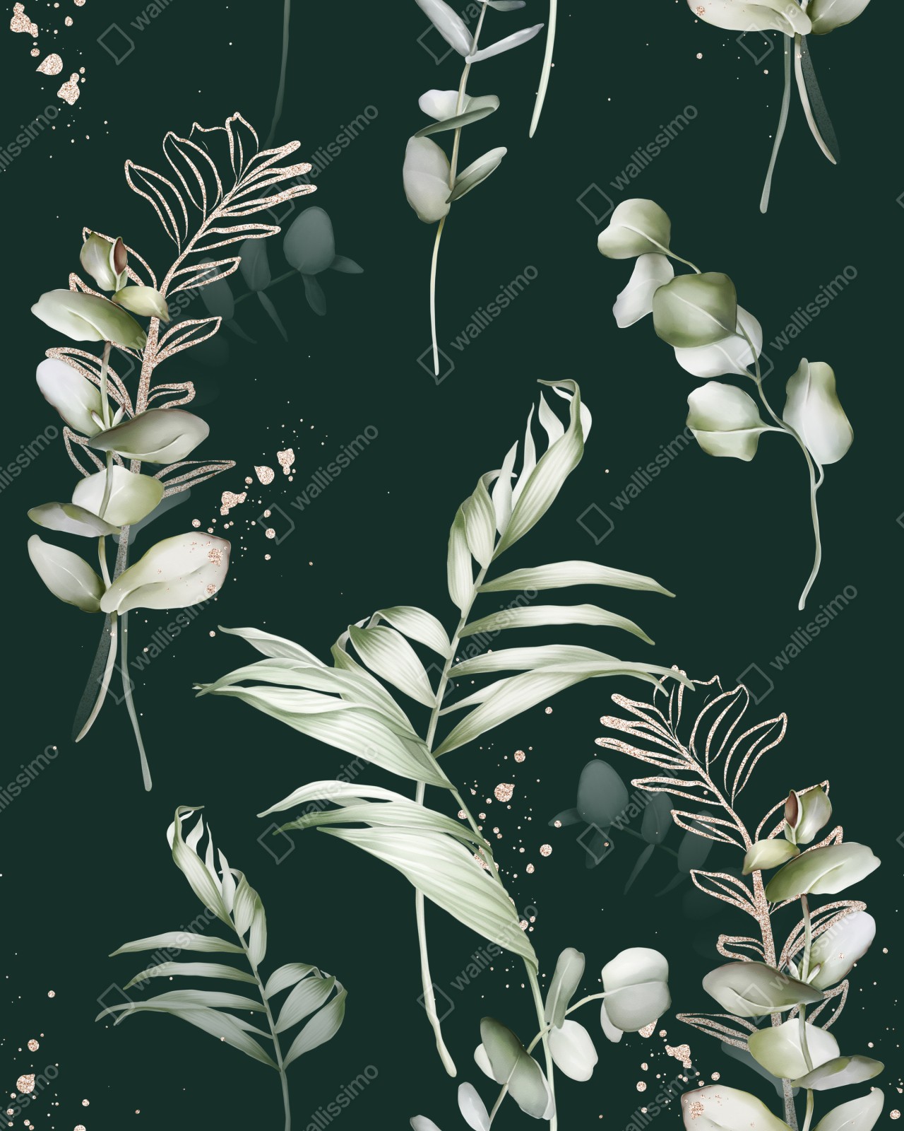 Repositionierbarer Aufkleber Eukalyptus muster mit goldakzenten