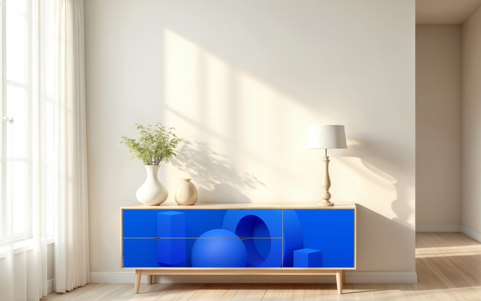 Repositionierbarer Aufkleber Blaue geometrische 3d-komposition