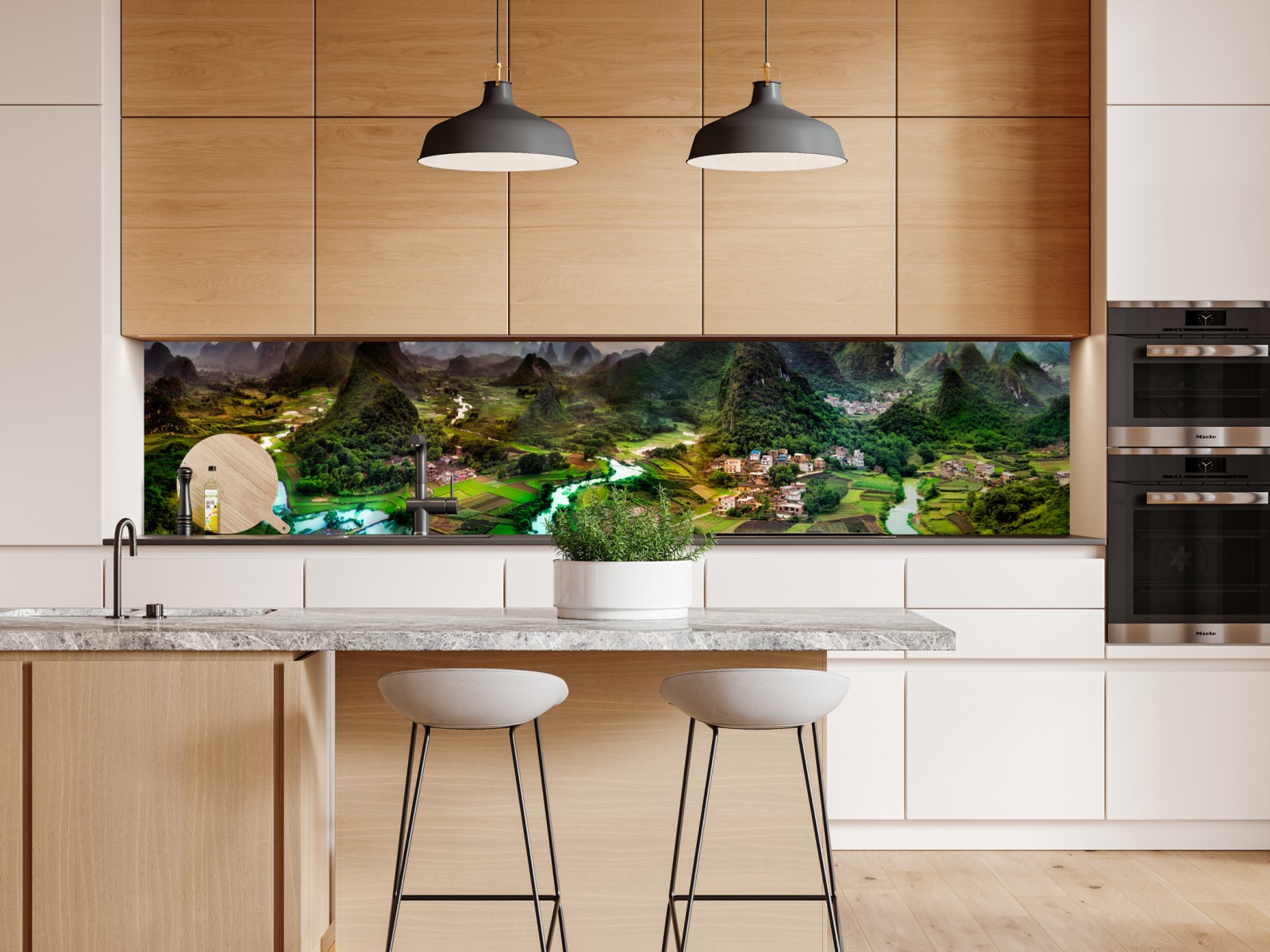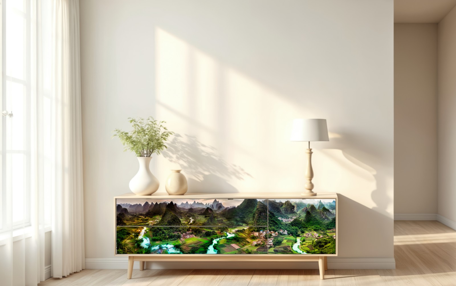 Repositionierbarer Aufkleber Smaragdfluss zwischen karsthügeln panorama