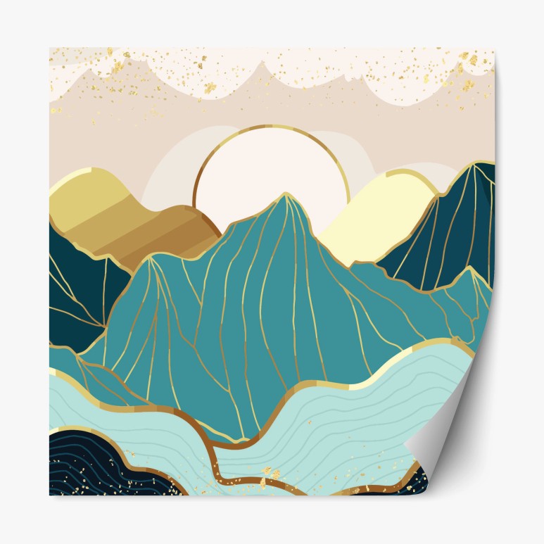 Repositionierbarer Aufkleber Türkise berge mit goldenen akzenten