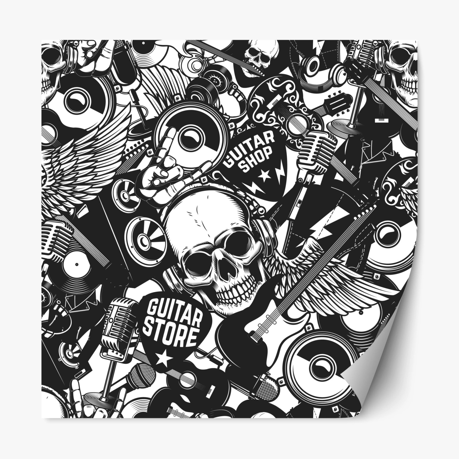 Repositionierbarer Aufkleber Rock-collage mit schädel und gitarre