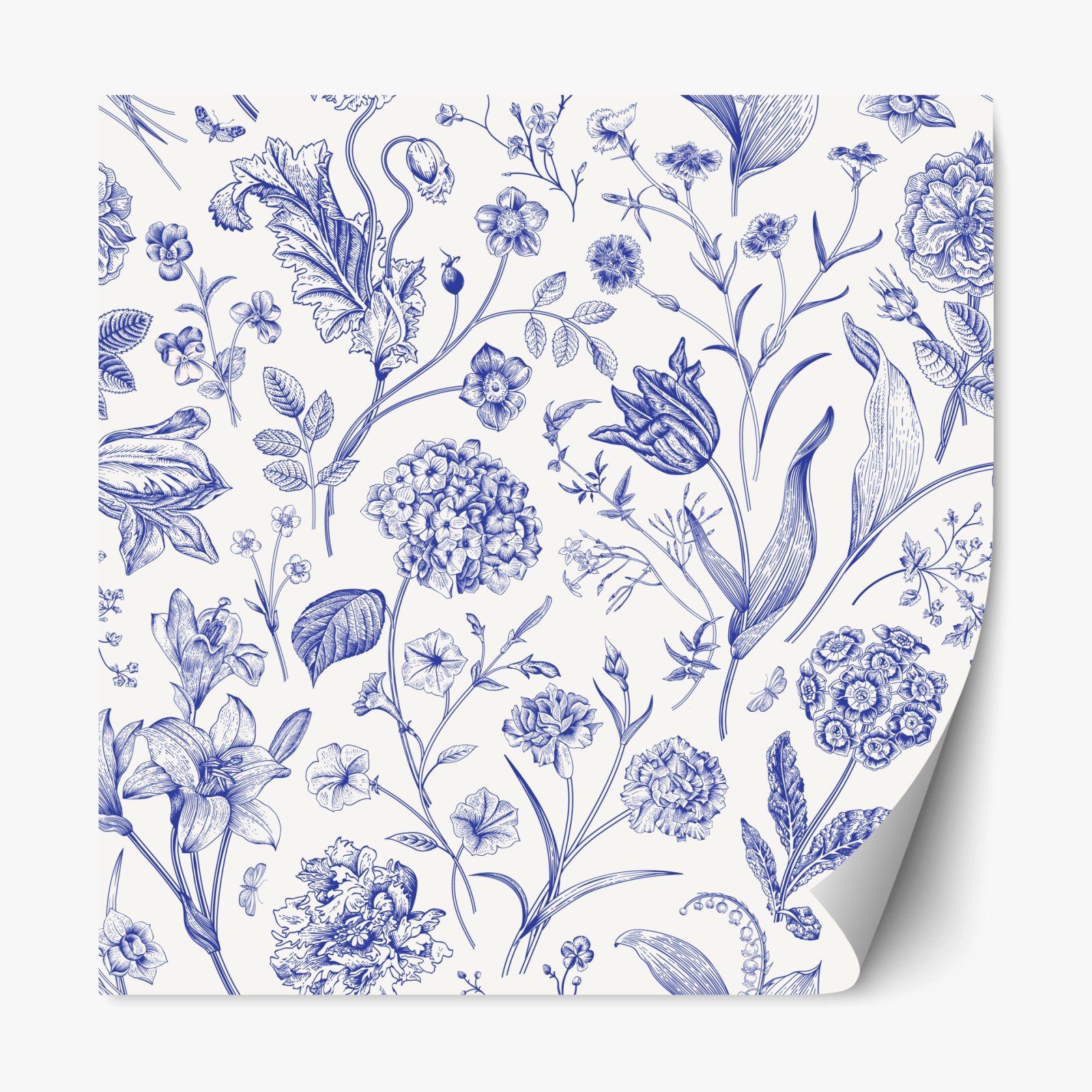 Repositionierbarer Aufkleber Klassisches blaues toile blumenmuster