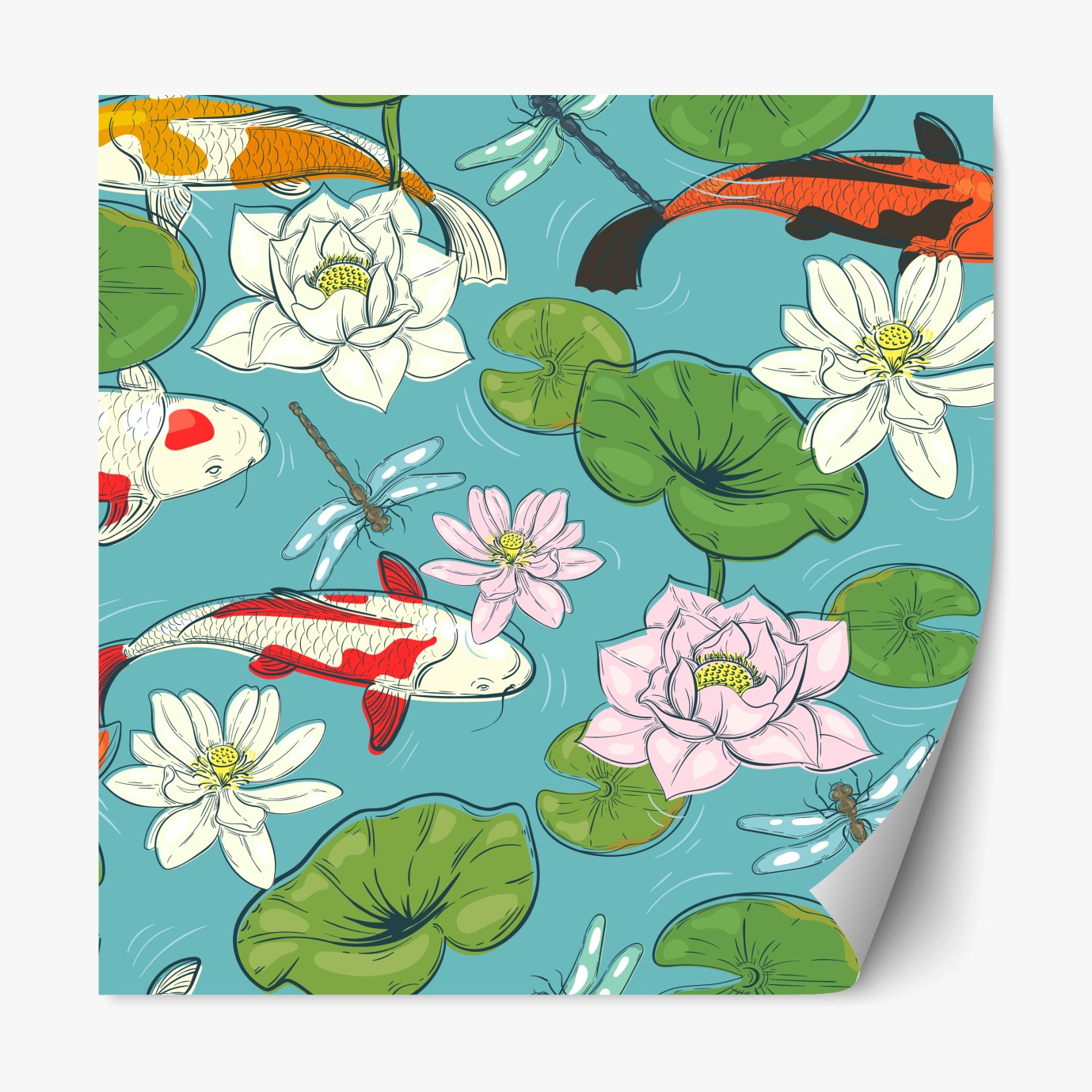 Repositionierbarer Aufkleber Ruhiger koi-teich mit lotuspflanzen
