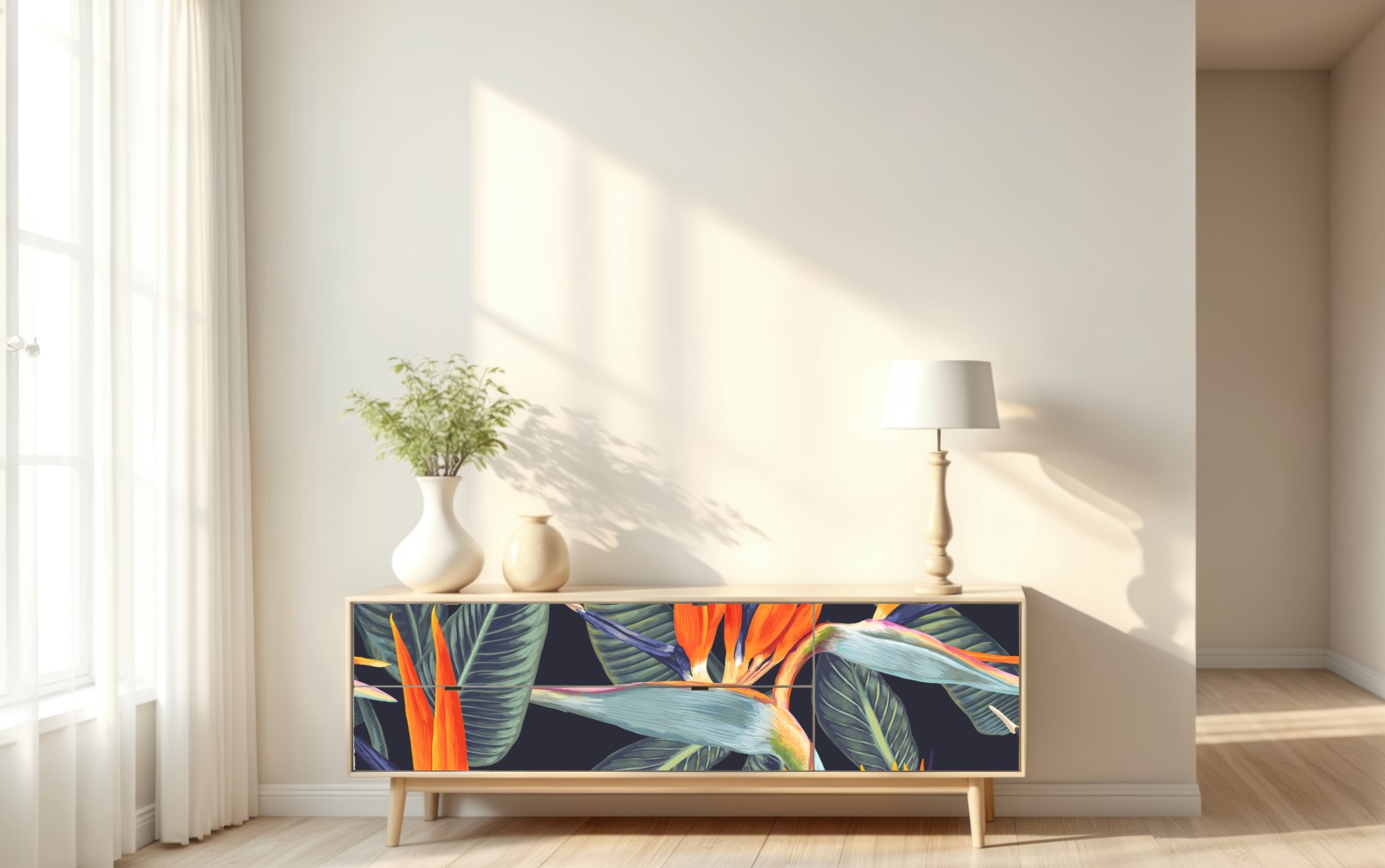 Repositionierbarer Aufkleber tropisches muster mit strelitzien
