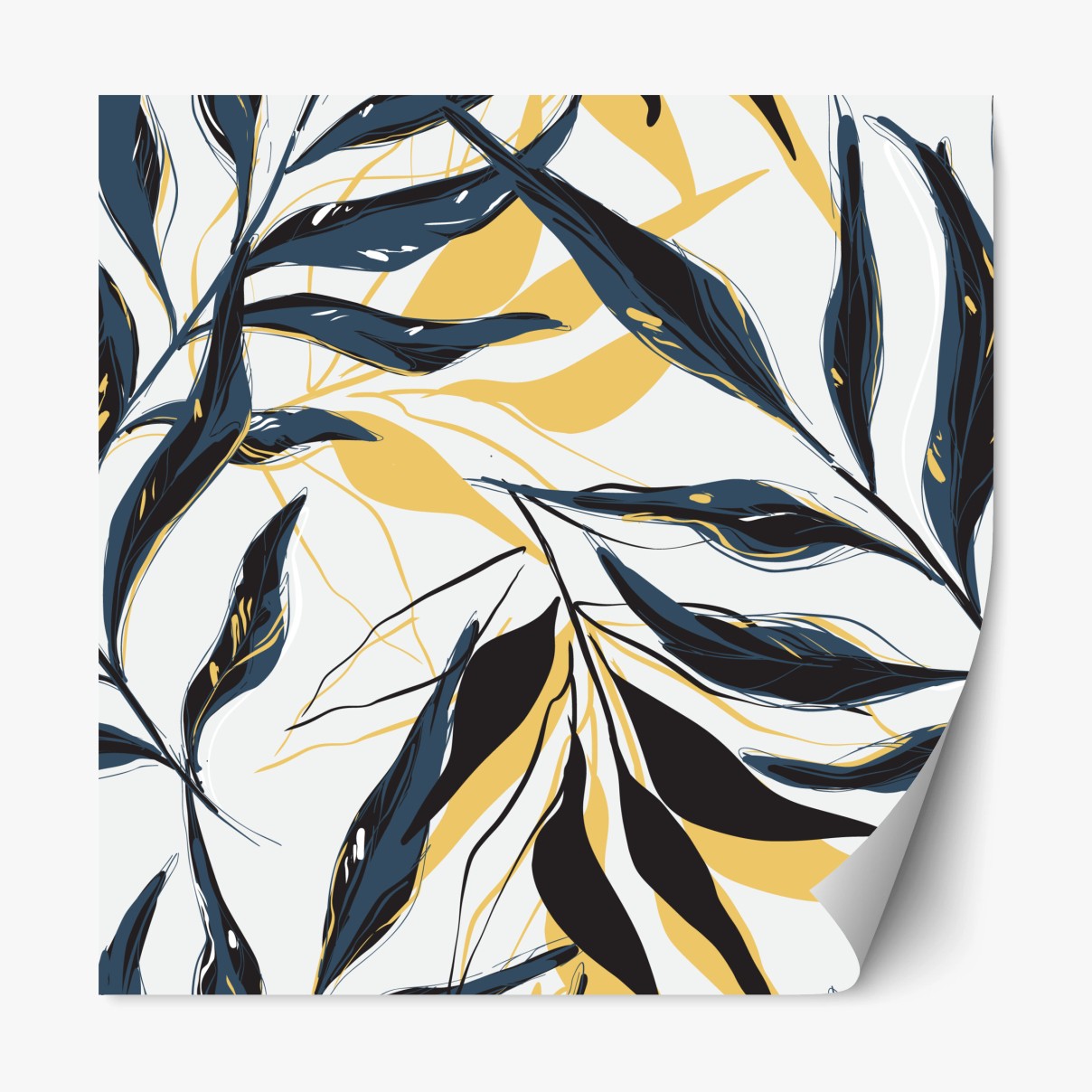 Repositionierbarer Aufkleber Marineblaue und goldene botanische blattkomposition