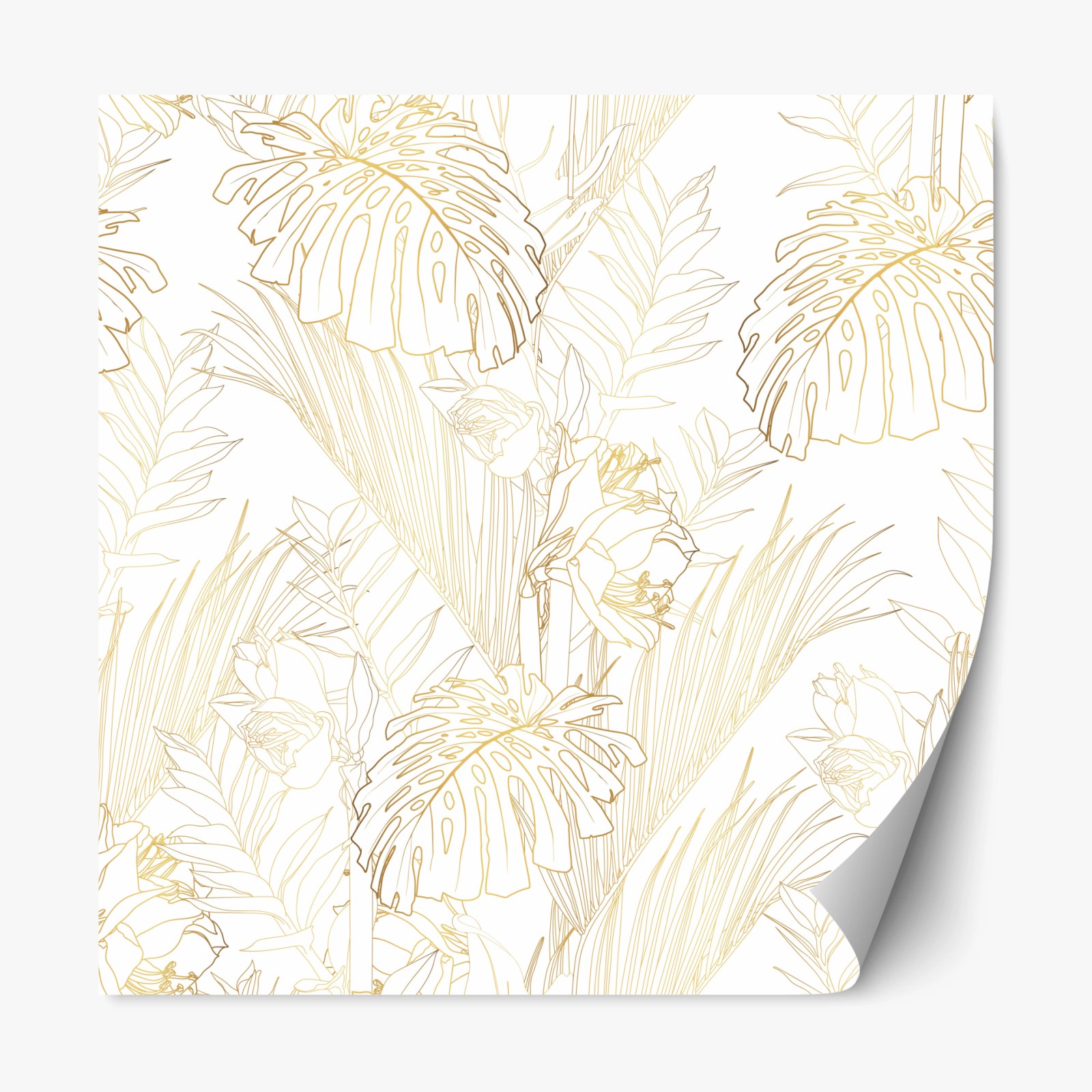 Repositionierbarer Aufkleber Goldenes tropisches blattmuster