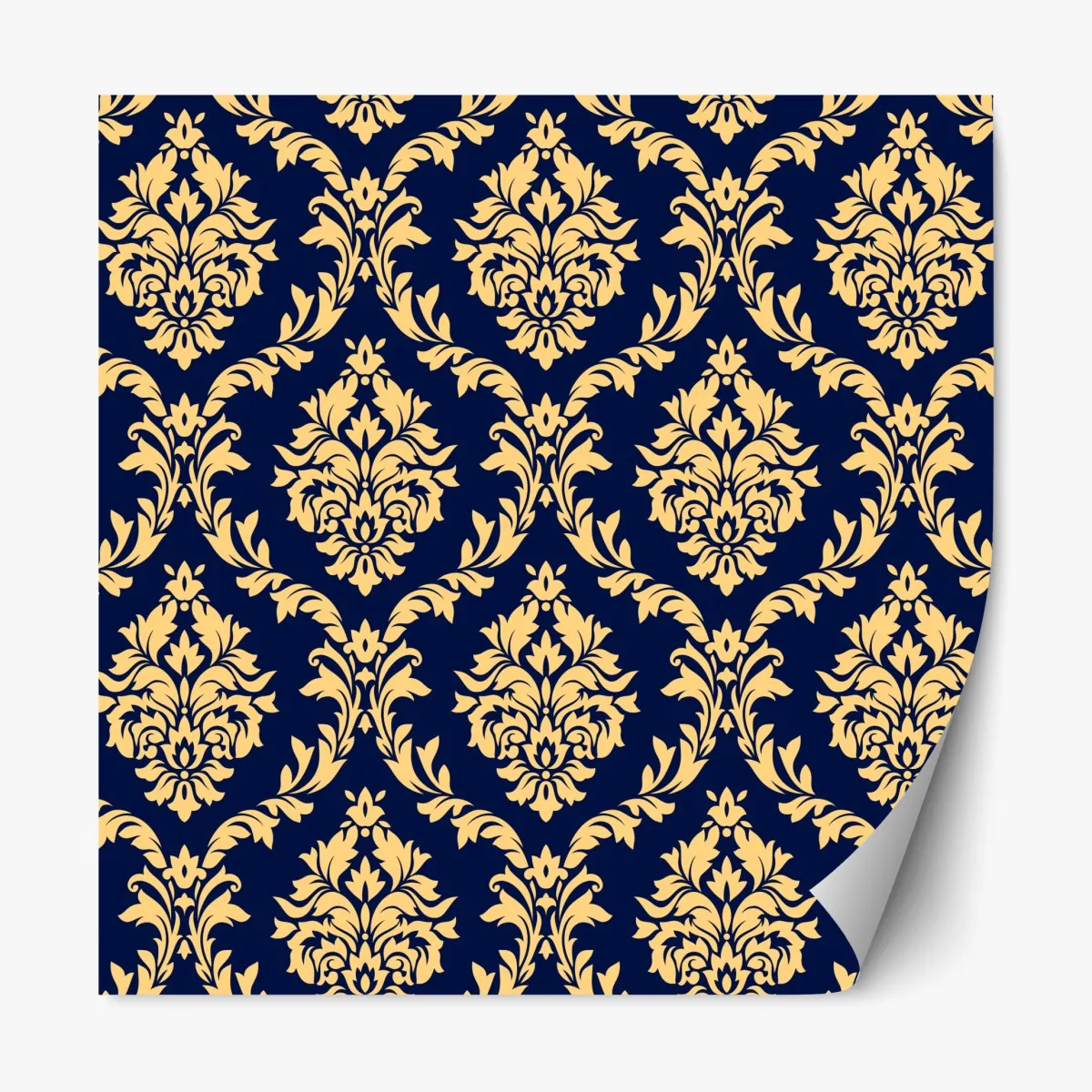 Repositionierbarer Aufkleber elegantes goldenes damastmuster auf tiefblauem hintergrund