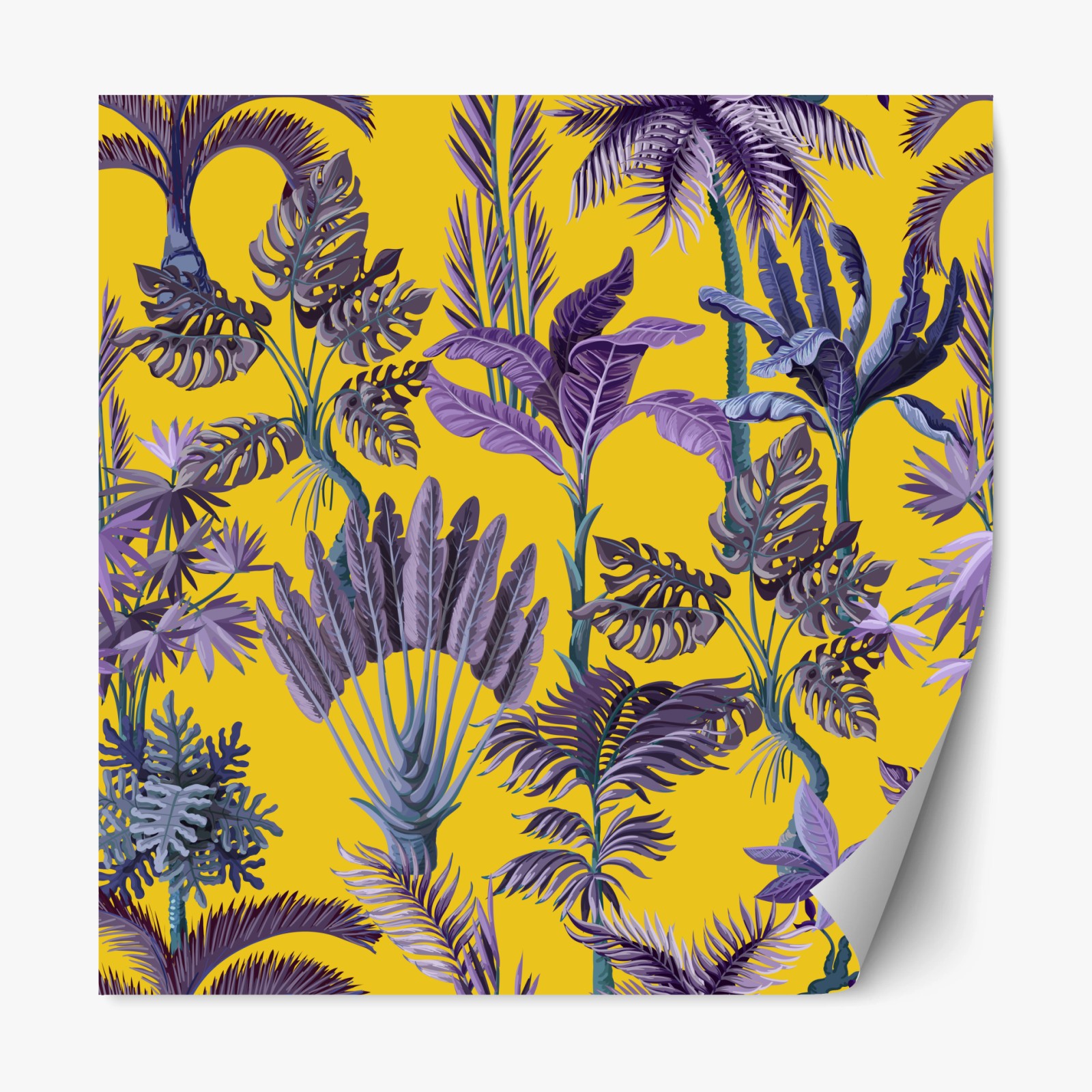 Repositionierbarer Aufkleber Tropische lila blätter auf gelbem hintergrund