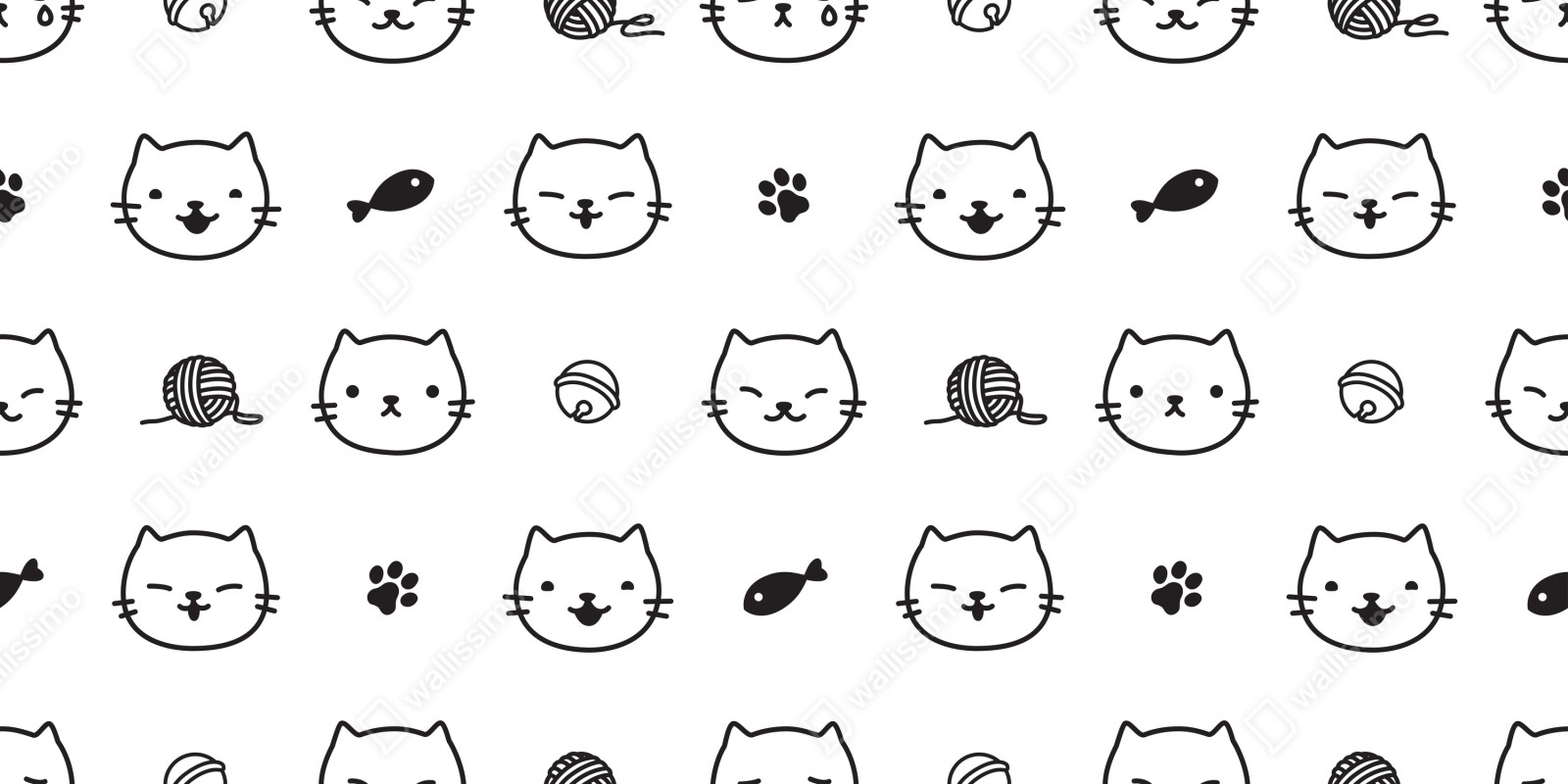 Charmante wiederkehrende Katzenikonen in Schwarzweiß verleihen jedem Kinderzimmer einen verspielt-minimalistischen Akzent.