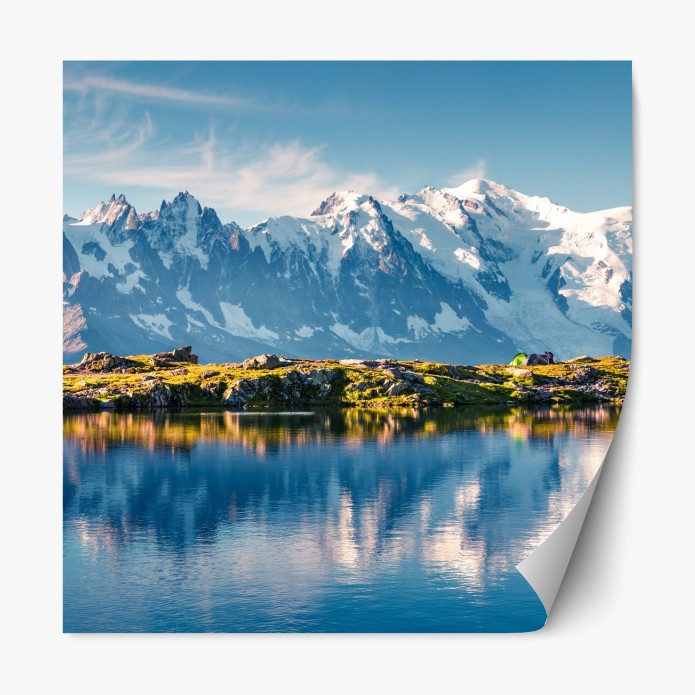 Repositionierbarer Aufkleber Panorama von Mont Blanc über dem Lac Blanc
