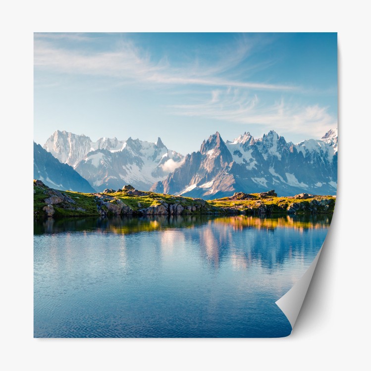 Repositionierbarer Aufkleber Panorama von Lac Blanc und Mont Blanc