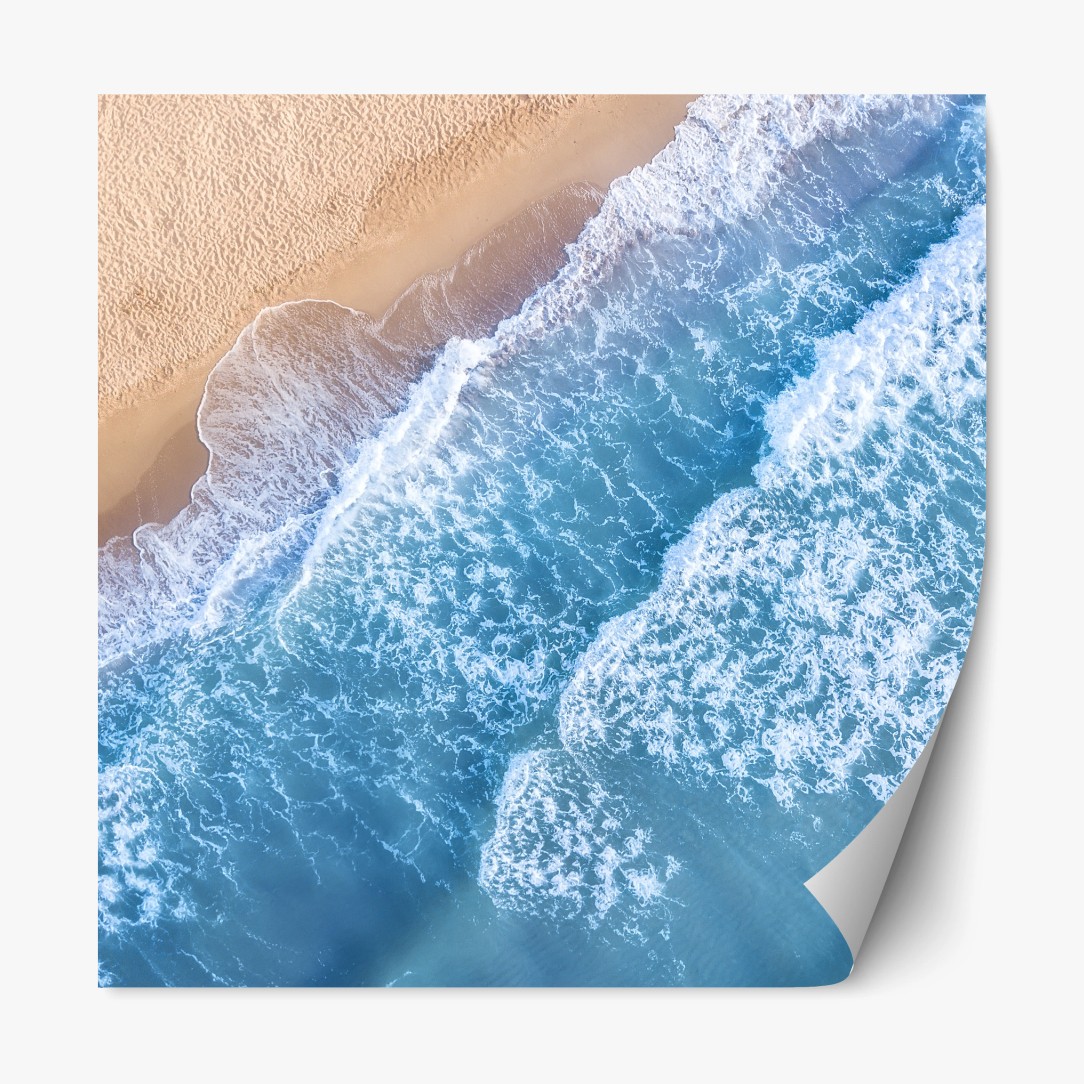 Repositionierbarer Aufkleber Luftaufnahme türkiser wellen an sandigem strand