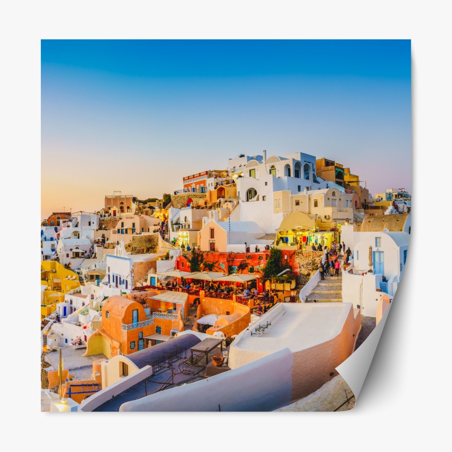 Repositionierbarer Aufkleber sonnenuntergang über Santorini panoramaansicht