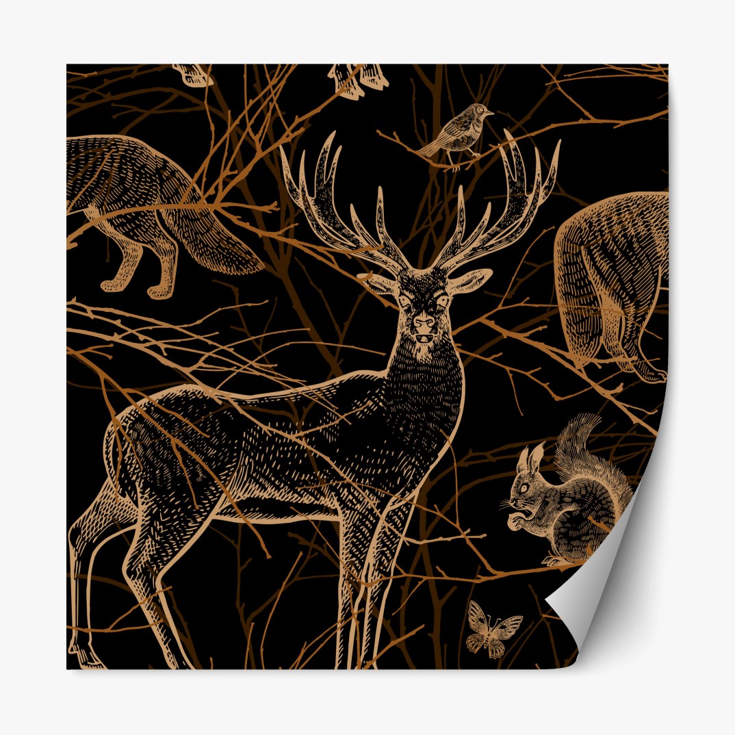 Repositionierbarer Aufkleber Goldene waldtiere auf schwarzem hintergrund
