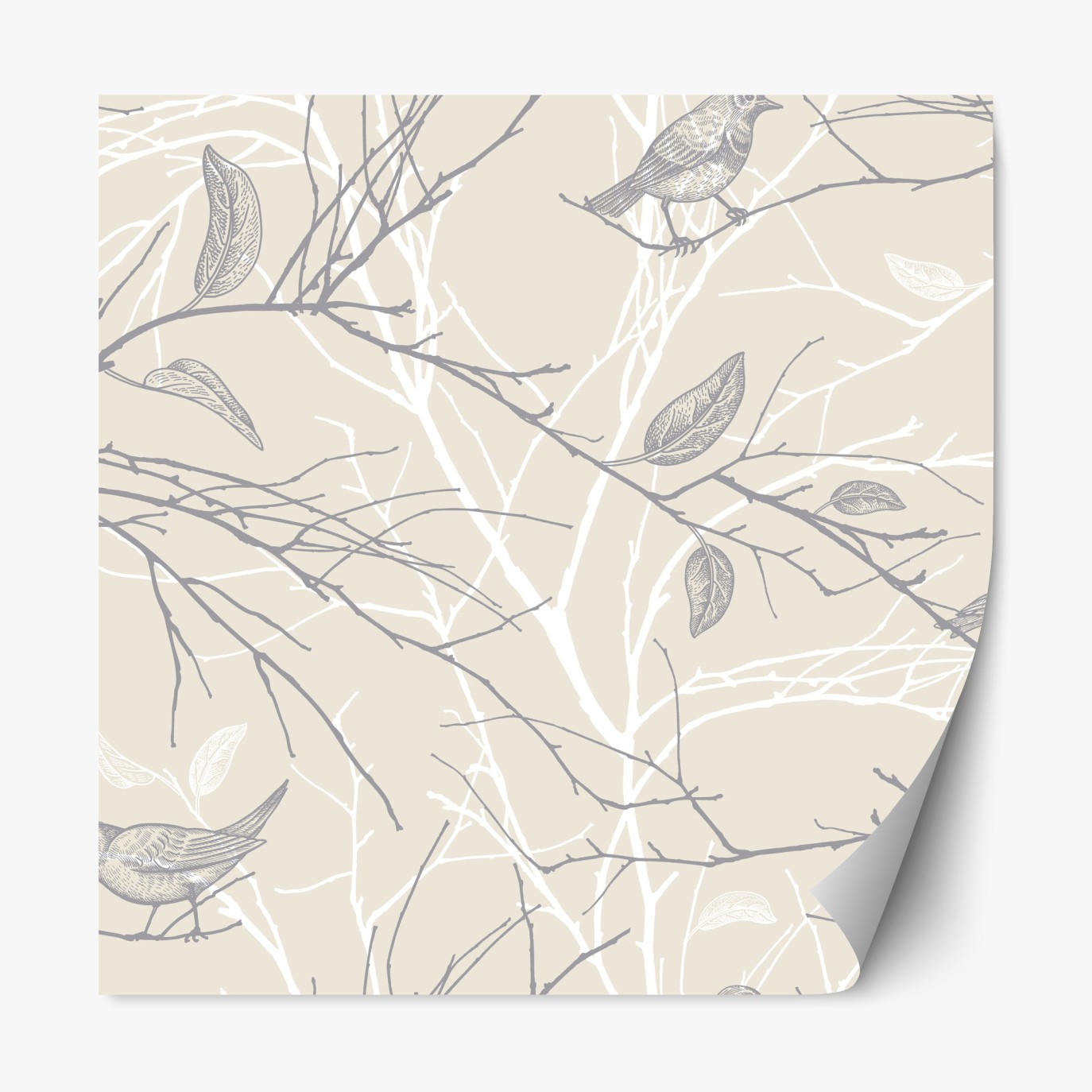 Repositionierbarer Aufkleber zartes beiges muster mit vögeln und ästen
