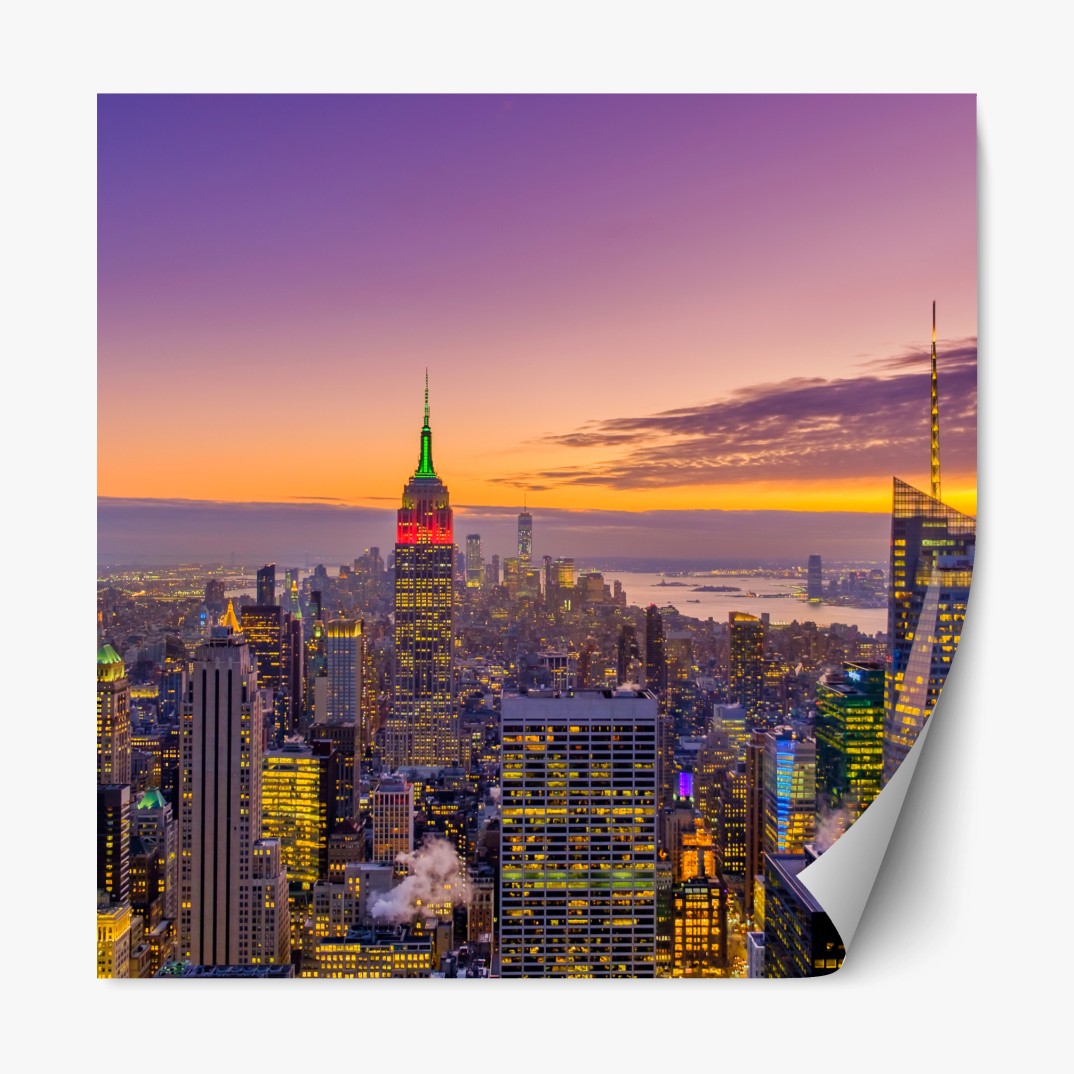 Repositionierbarer Aufkleber Lebendige New York skyline bei sonnenuntergang