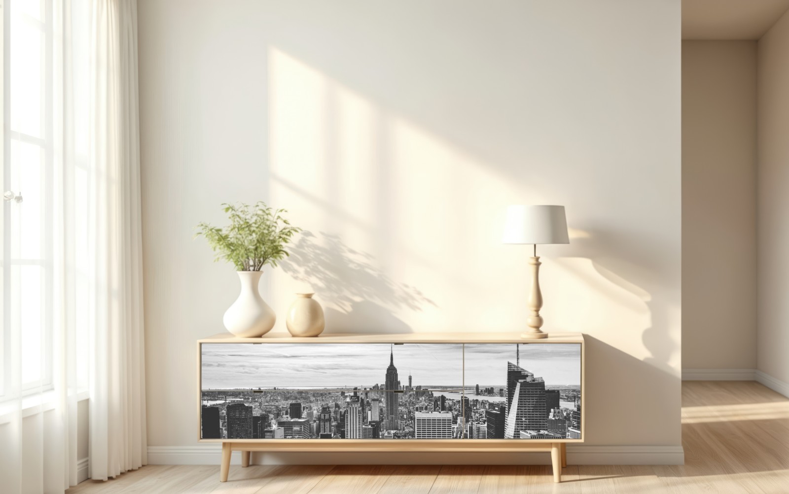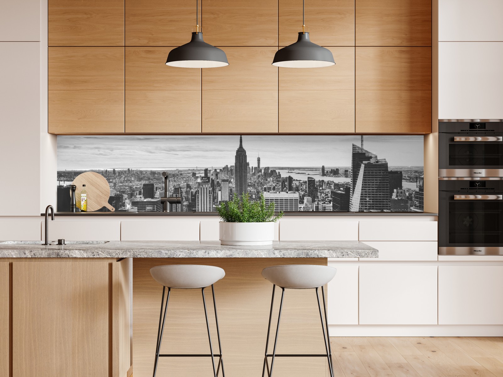 Eine eindrucksvolle monochrome Panoramaaufnahme von New York, die jedem Raum moderne Eleganz verleiht.
