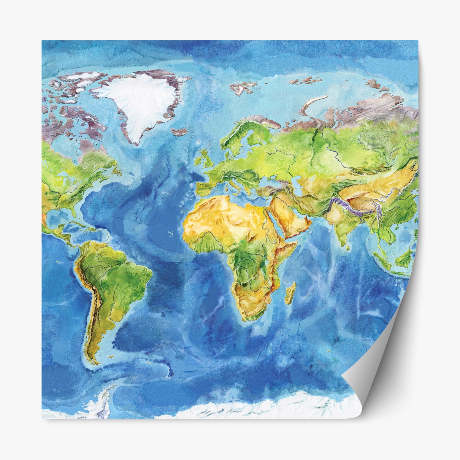 Repositionierbarer Aufkleber aquarell-physische weltkarte