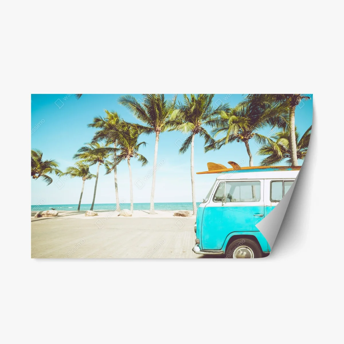Repositionierbarer Aufkleber Vintage surfbus am tropischen strand