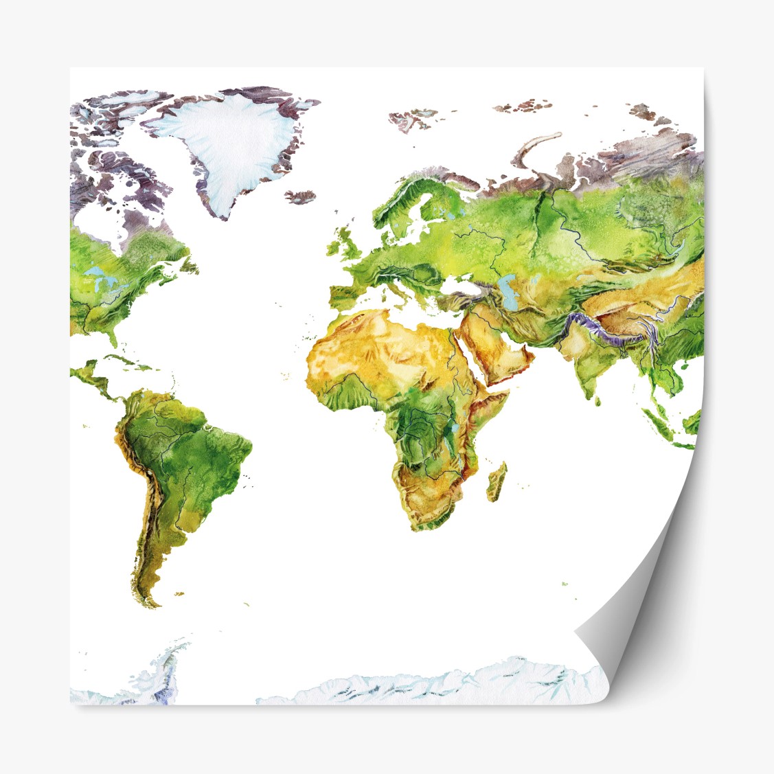 Repositionierbarer Aufkleber Aquarell-physische weltkarte