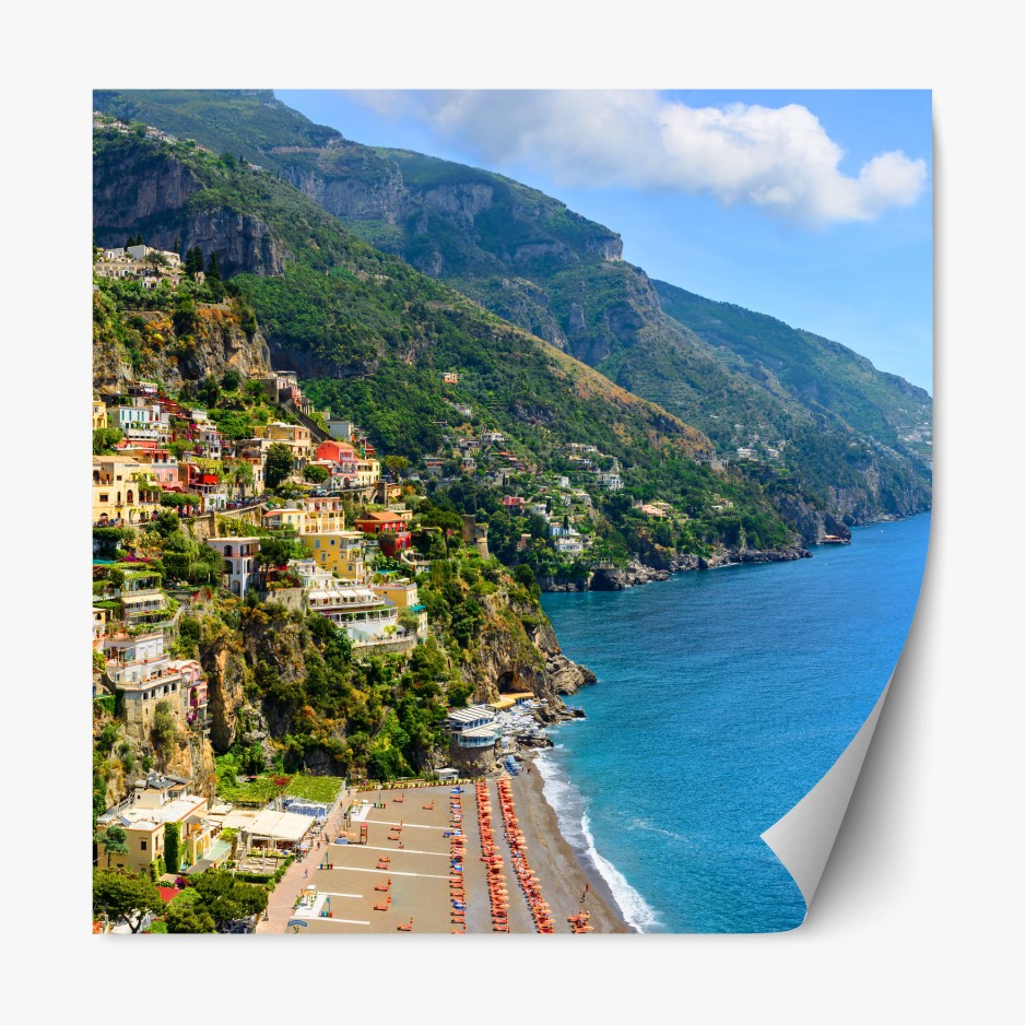Repositionierbarer Aufkleber Bunte panoramaaufnahme eines küstenortes am hang