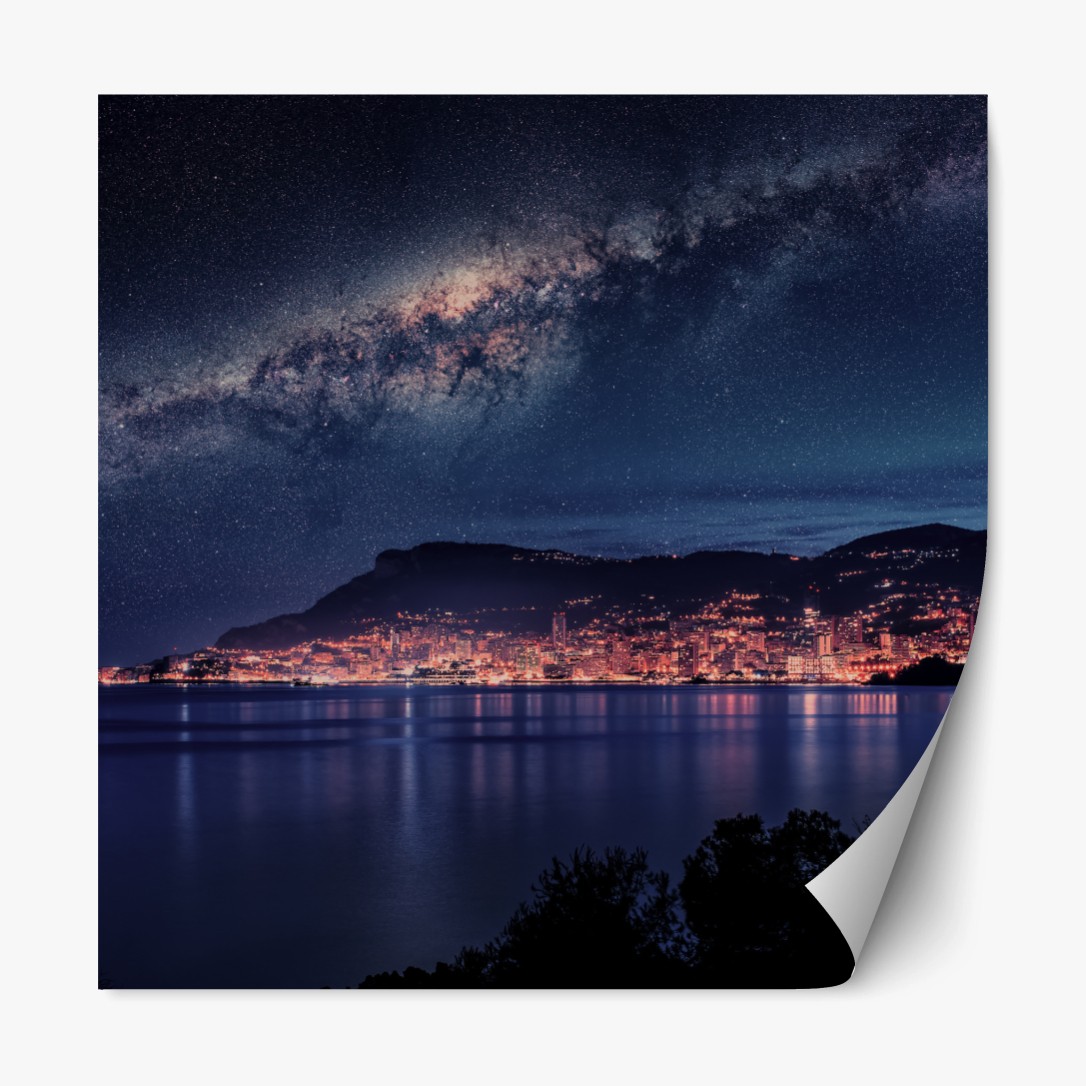 Repositionierbarer Aufkleber Küstenstadt unter der milchstraße