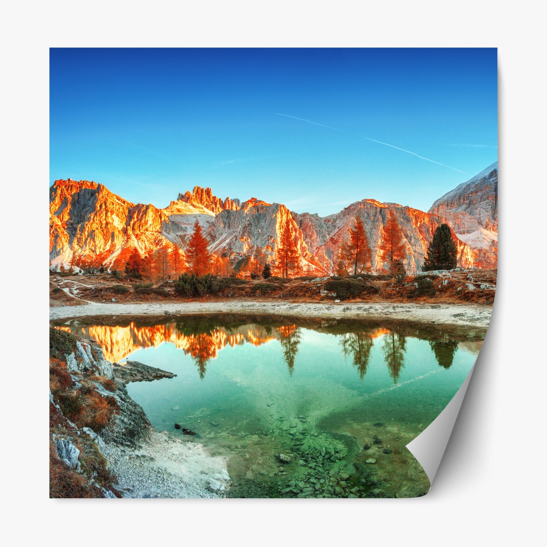 Repositionierbarer Aufkleber Alpiner sonnenaufgang über bergsee