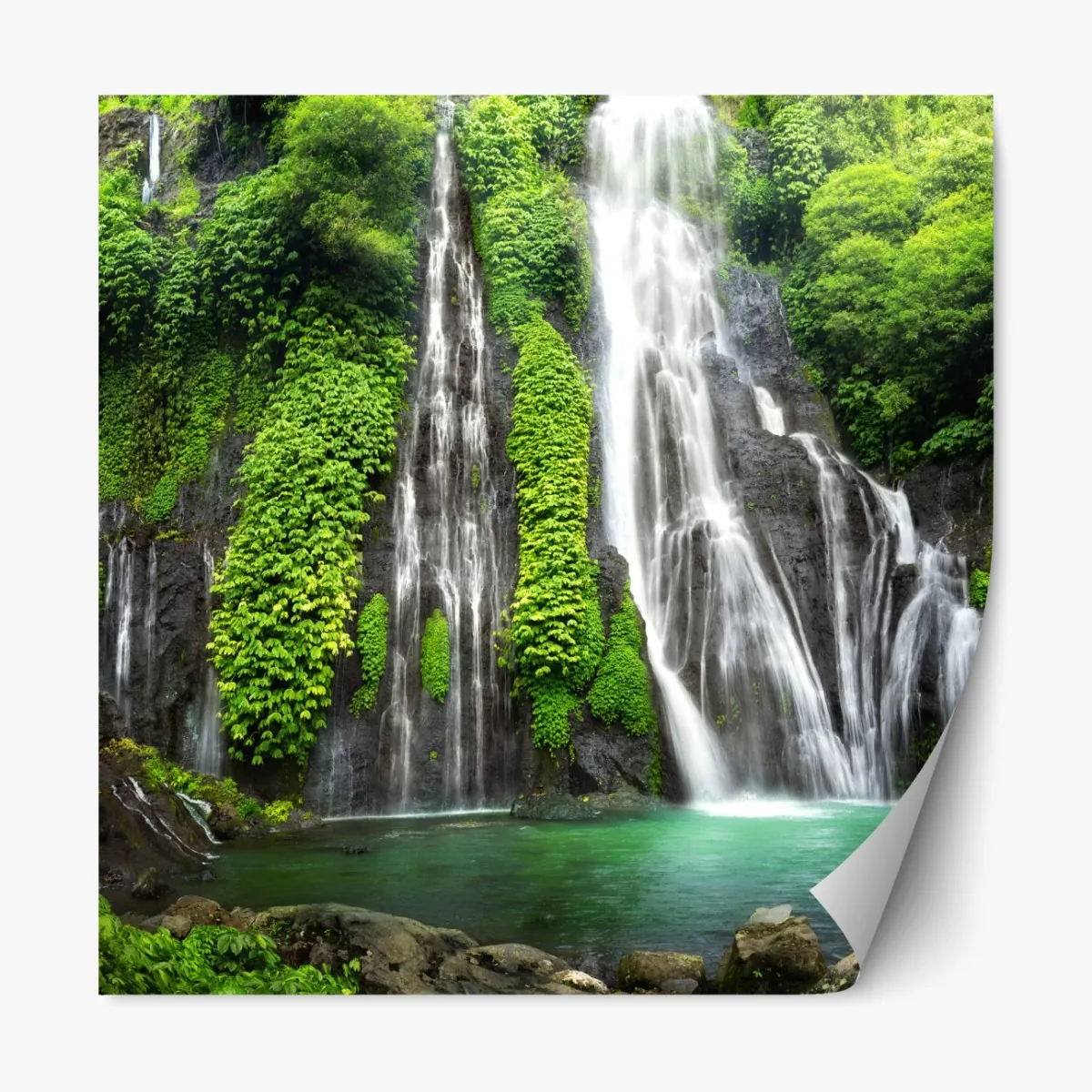 Repositionierbarer Aufkleber ruhiger wasserfall im smaragdgrünen wald