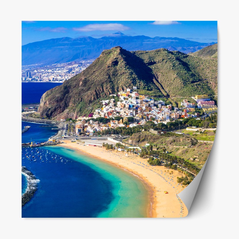 Repositionierbarer Aufkleber Sonnige bucht mit türkisblauem wasser