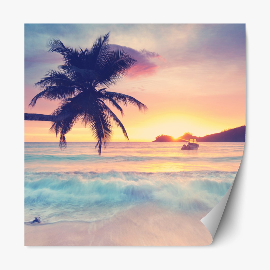 Repositionierbarer Aufkleber Tropischer pastellsonnenuntergang am meer