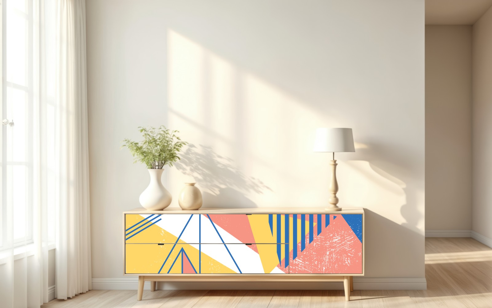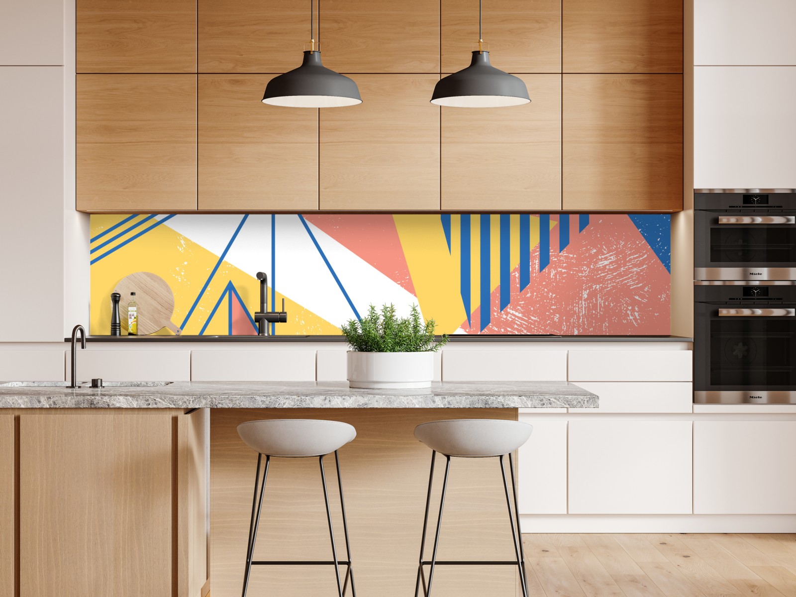 zarte pastellgrafik mit geometrischen formen bringt moderne farbe und verspielte akzente in jeden raum.