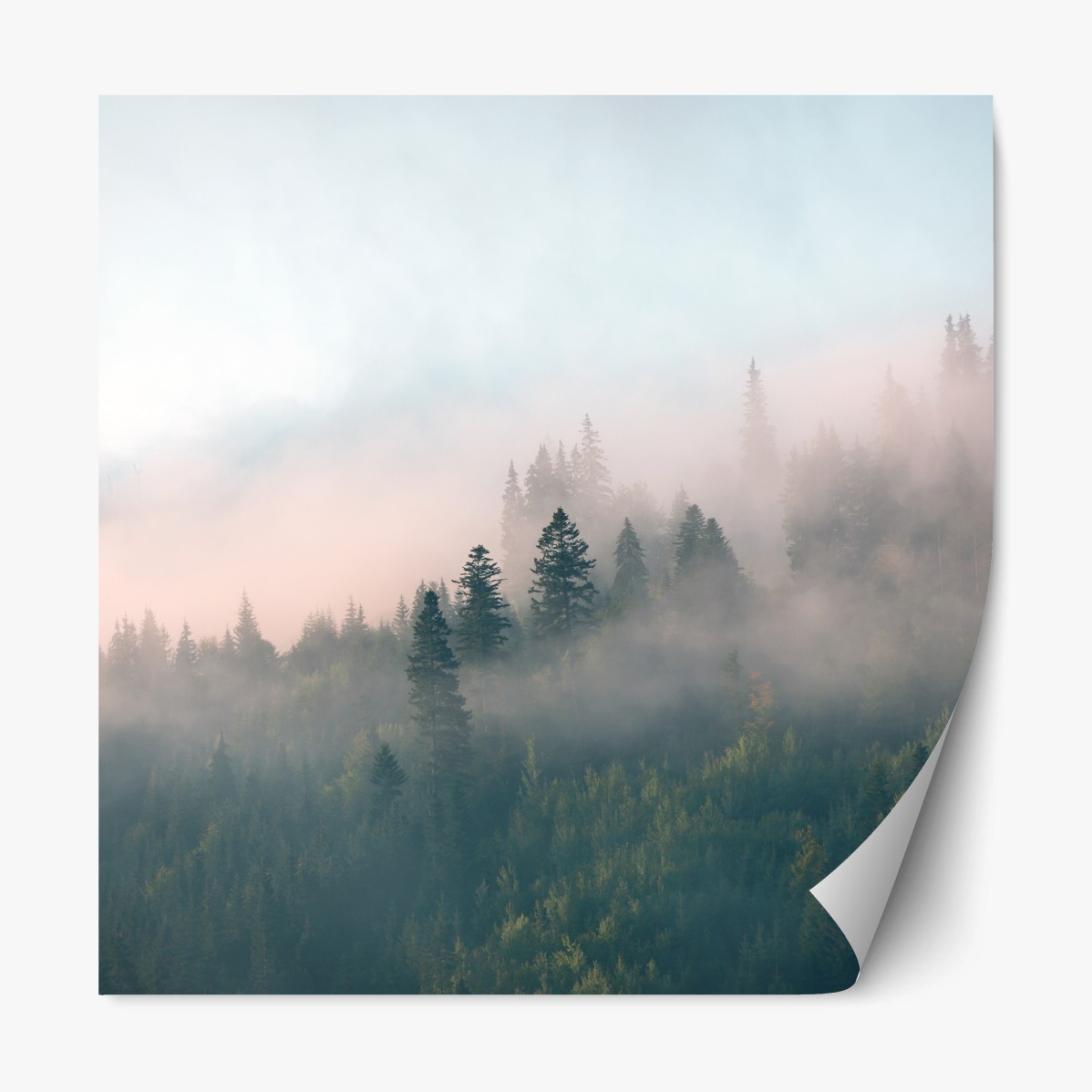 Repositionierbarer Aufkleber Nebliger morgenwald